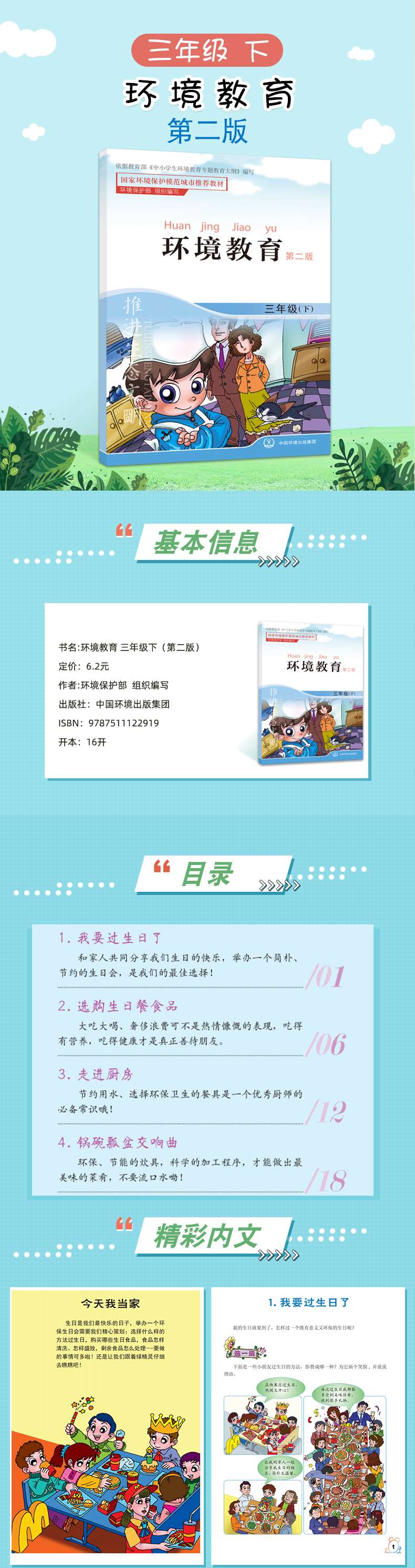 环境教育 第二版 三年级下 环保模范城市教材 环境科普读物 环境保护 中国环境出版社 9787511122919