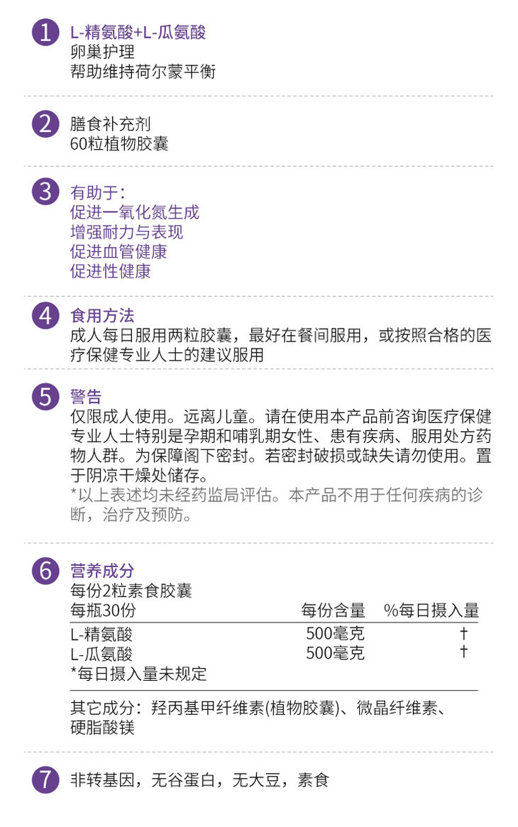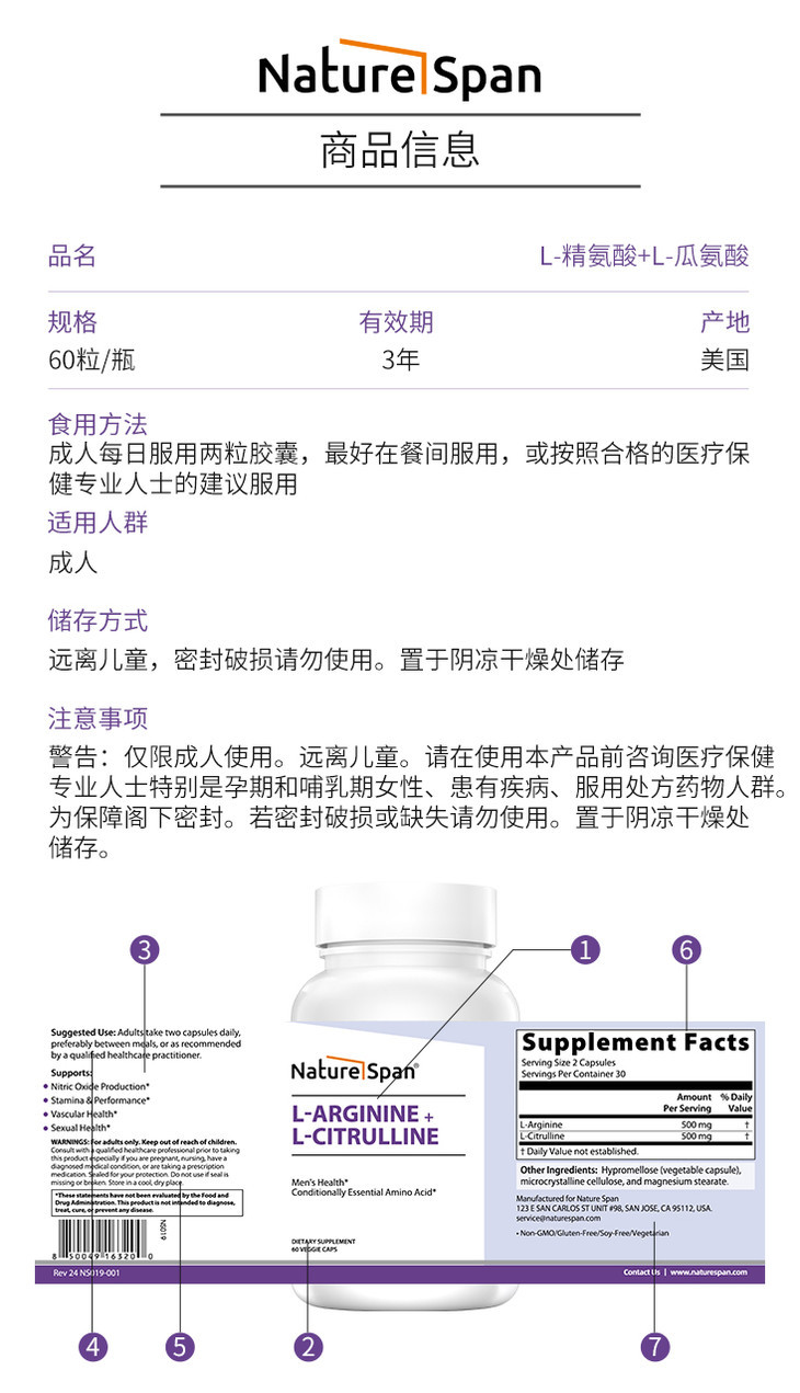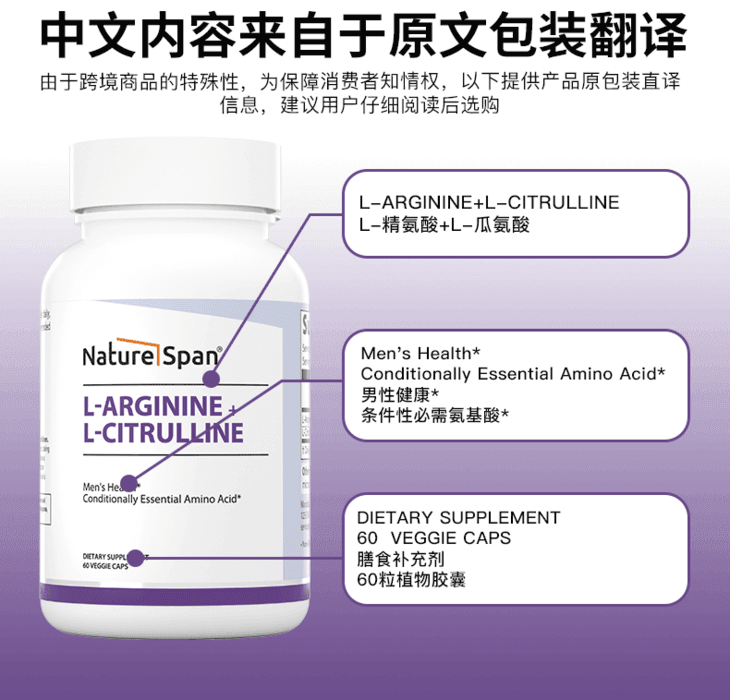 左旋精氨酸+瓜氨酸胶囊60粒 NATURESPAN倍能适