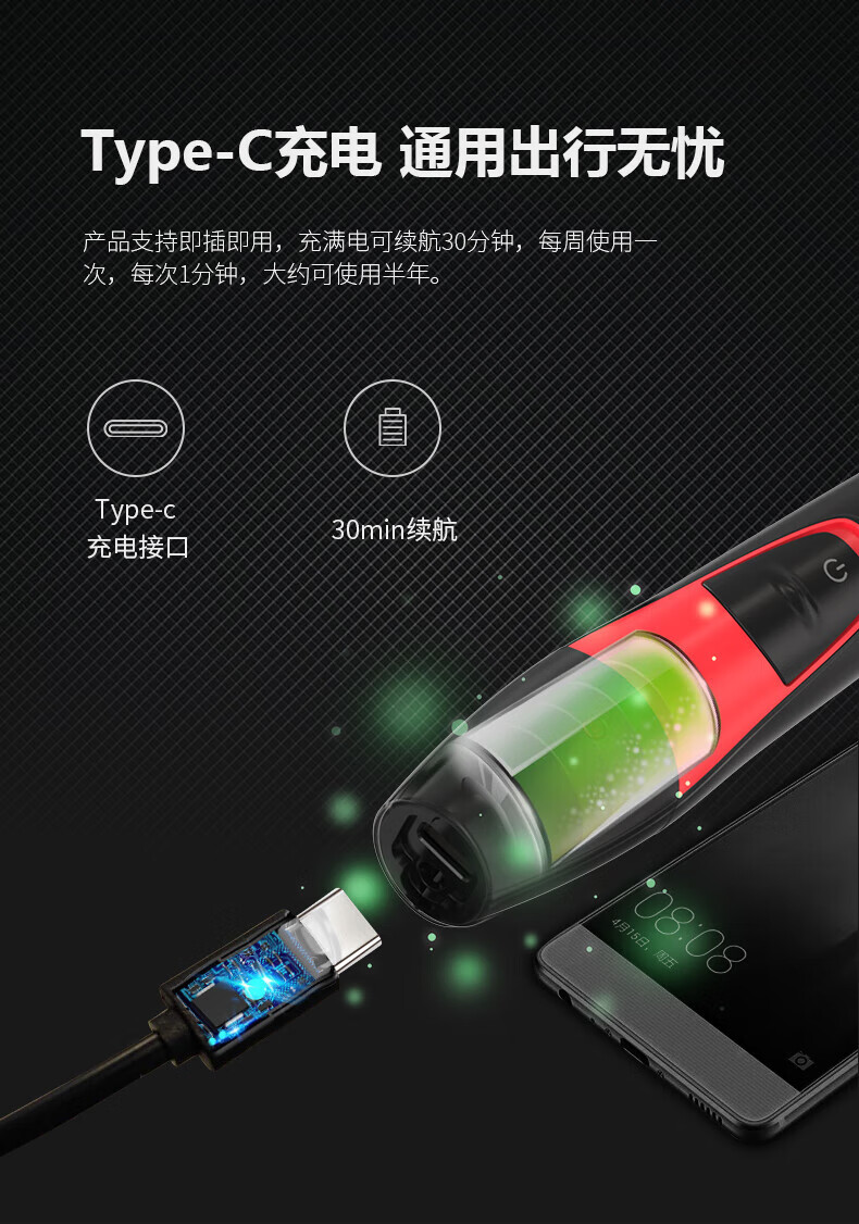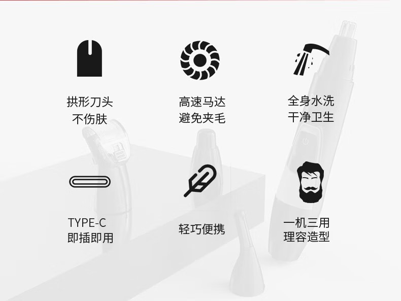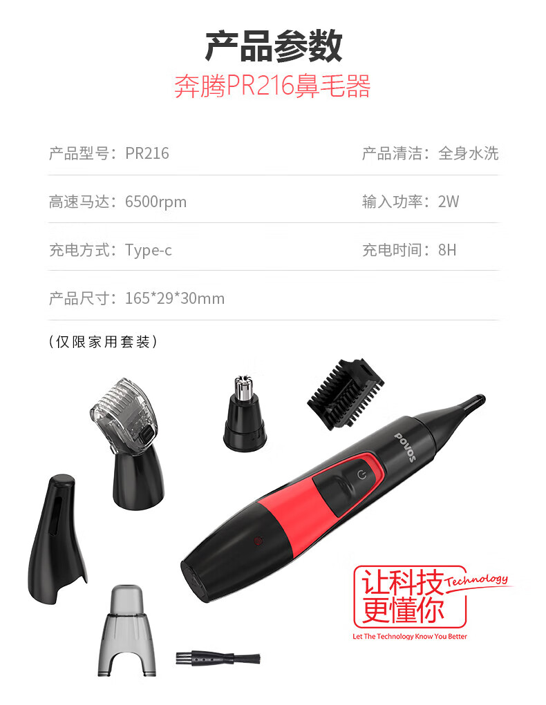 奔腾POVOS鼻毛修剪器电动TypeC充电式男女通用修眉鼻毛器身水洗PR216