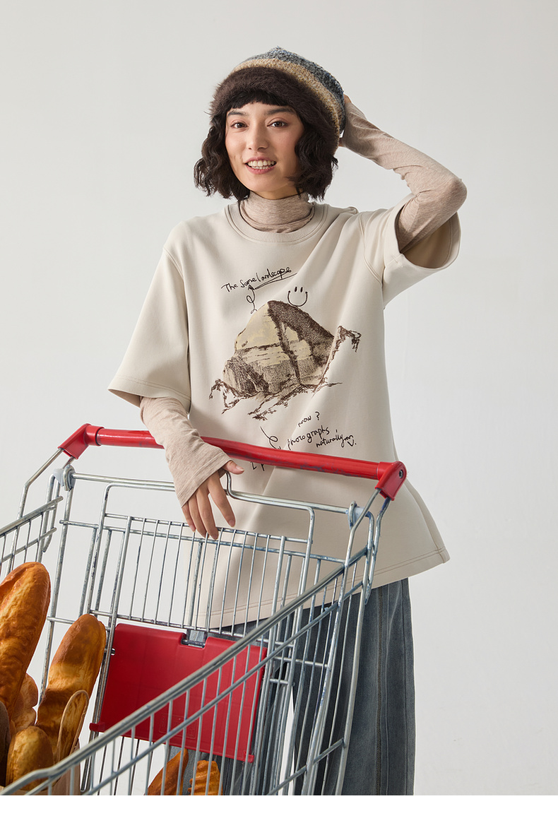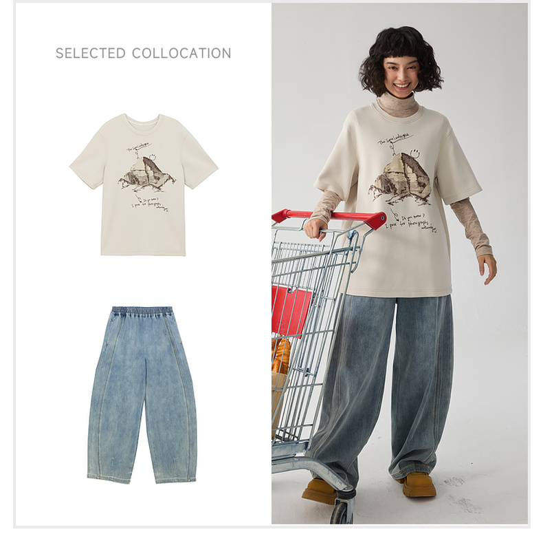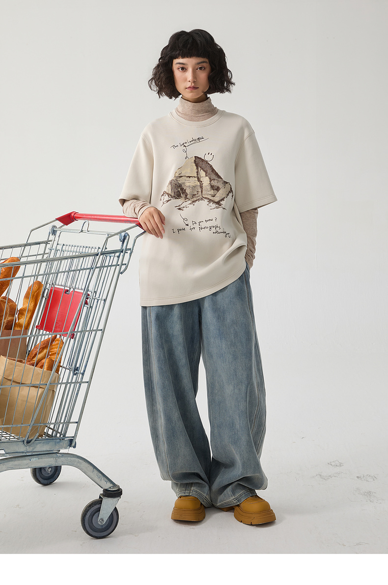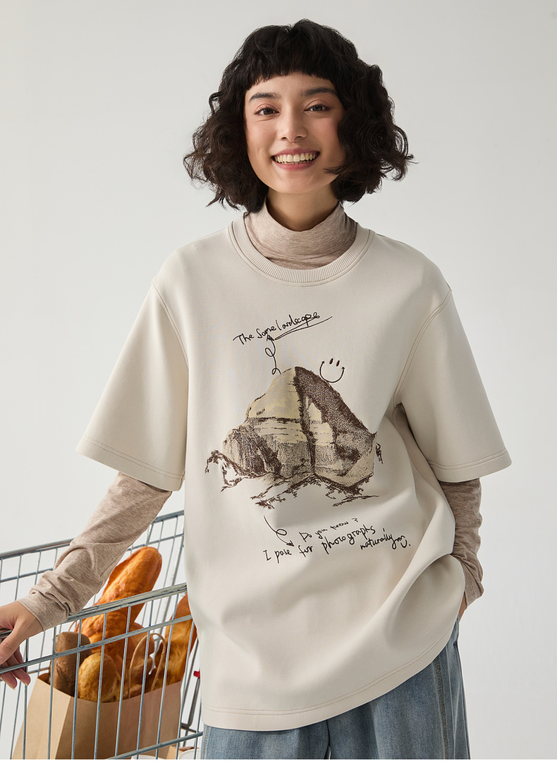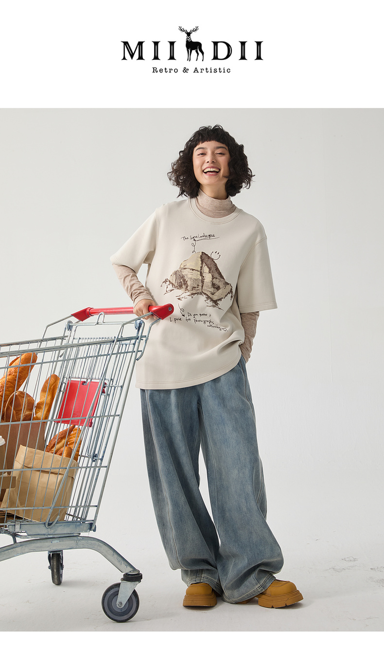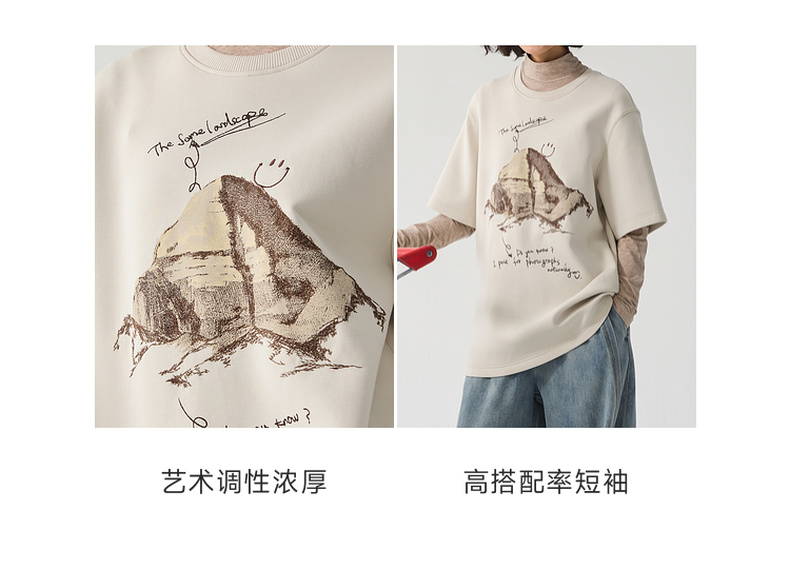 谜底厚款T恤短袖女士2024冬季新品百搭宽松绣花圆领上衣244MT1659