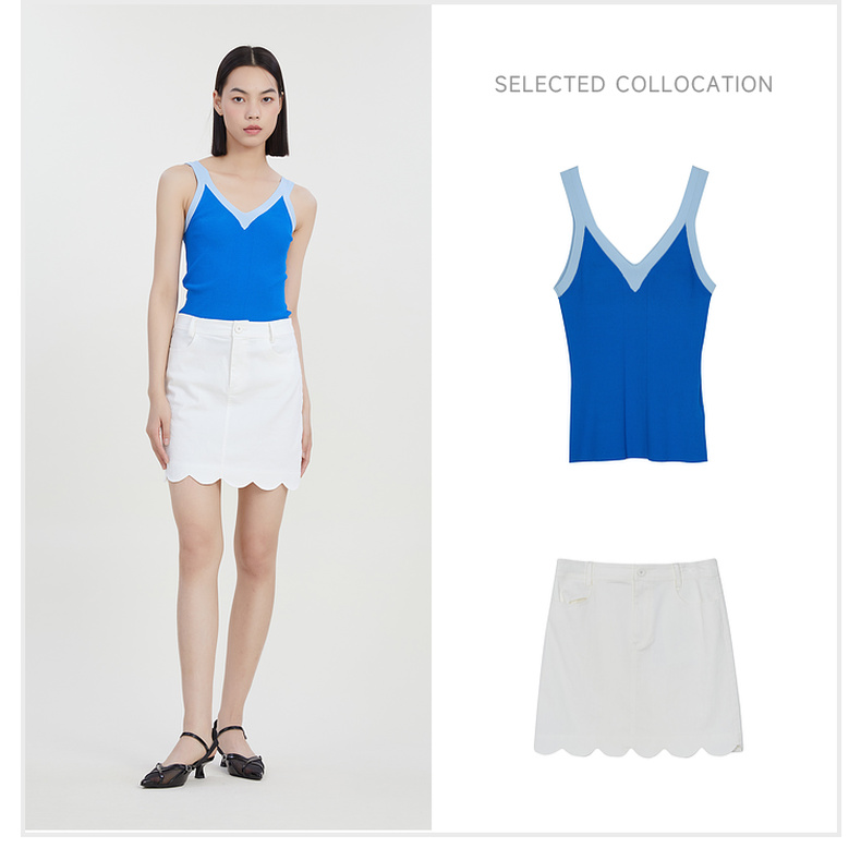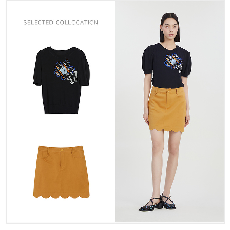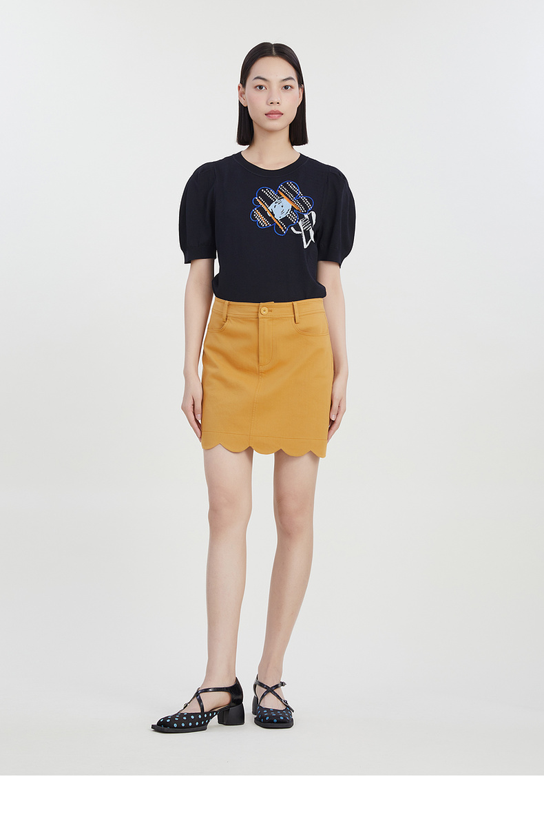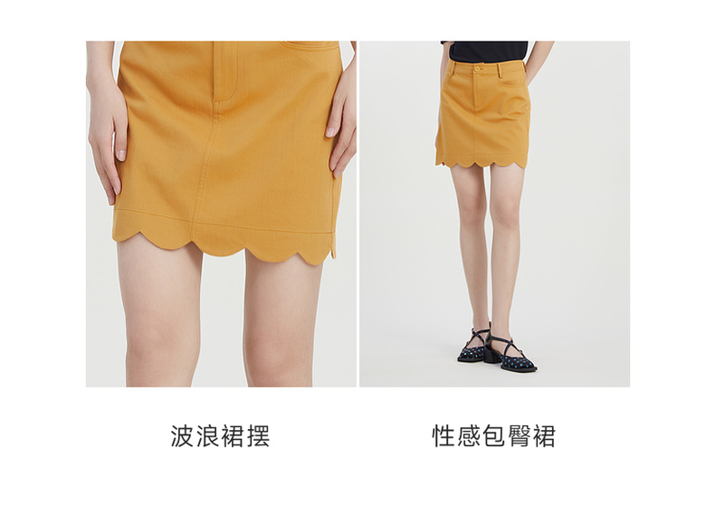 谜底时尚包臀裙2023夏新款纯色修身短款波浪裙边半身裙232MB0692