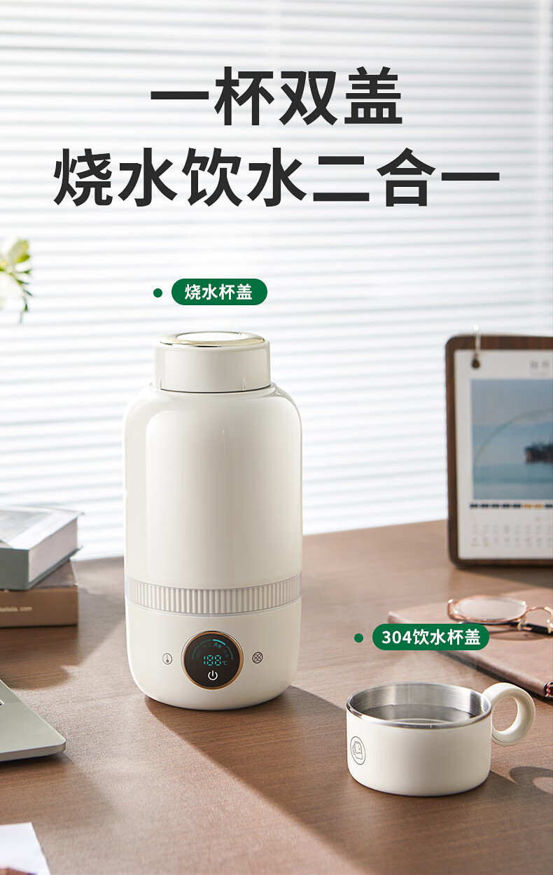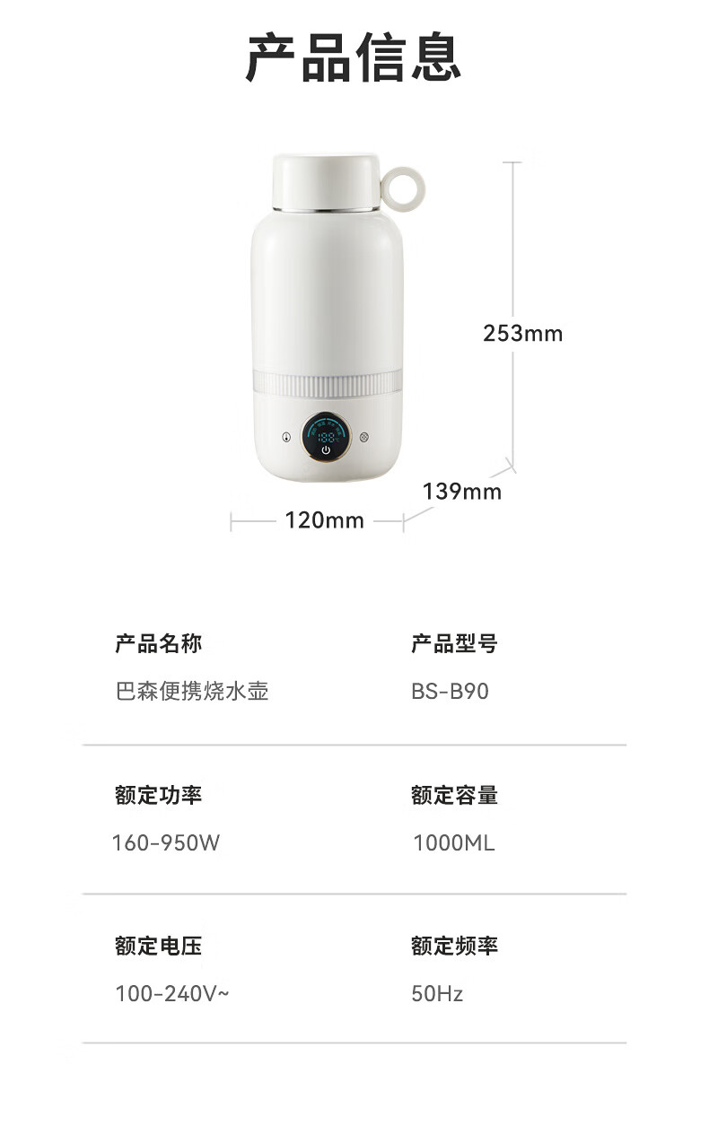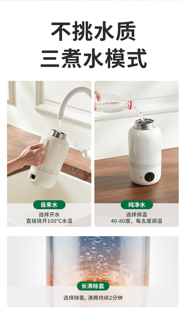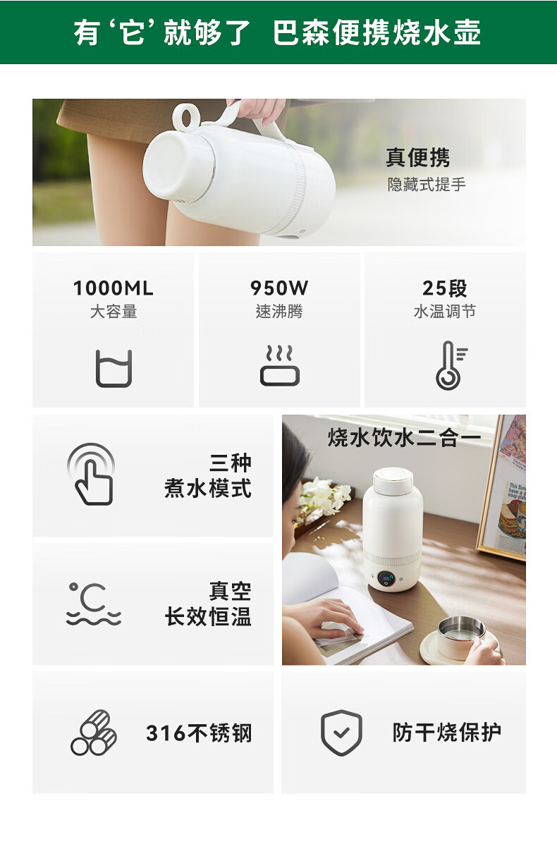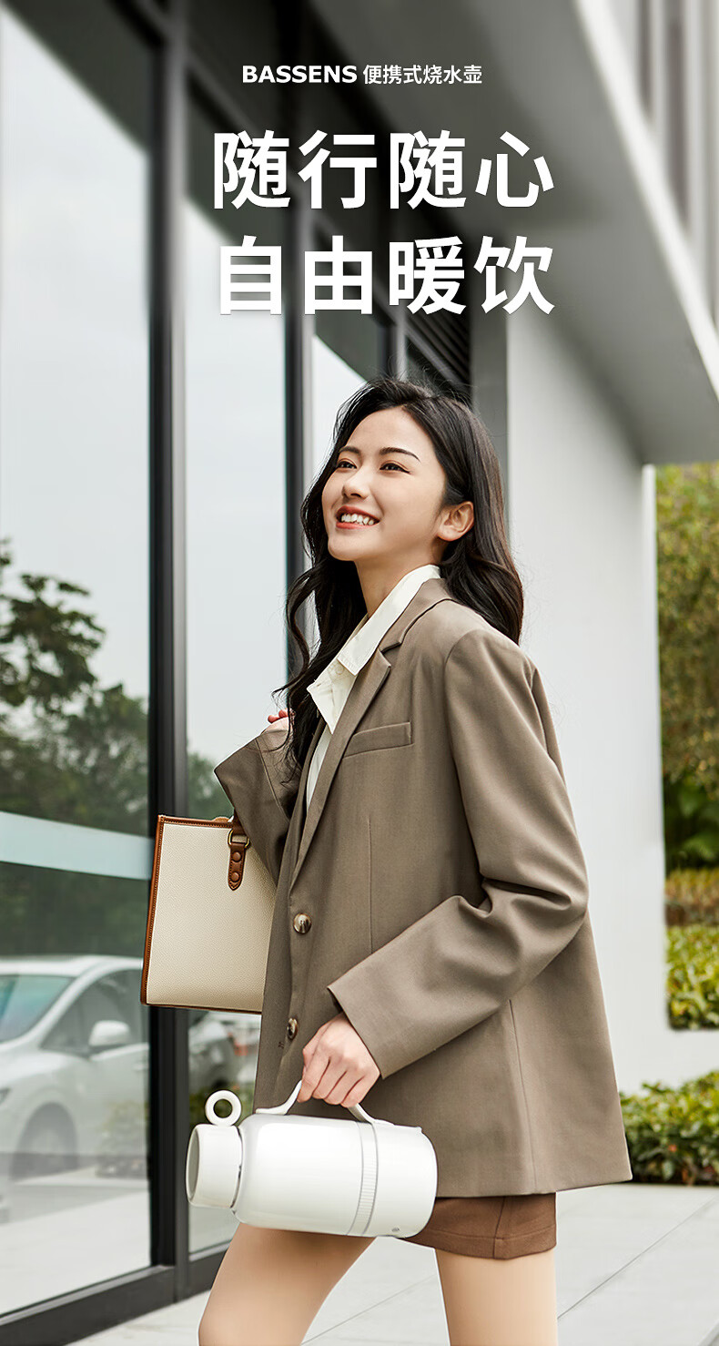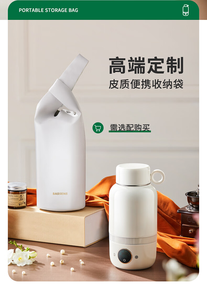 【小家电】BASSENS巴森便携式烧水壶旅行保温316不锈钢电热水壶便携式烧水杯大容量真空恒温壶加热水杯可除氯BS-B90 HF