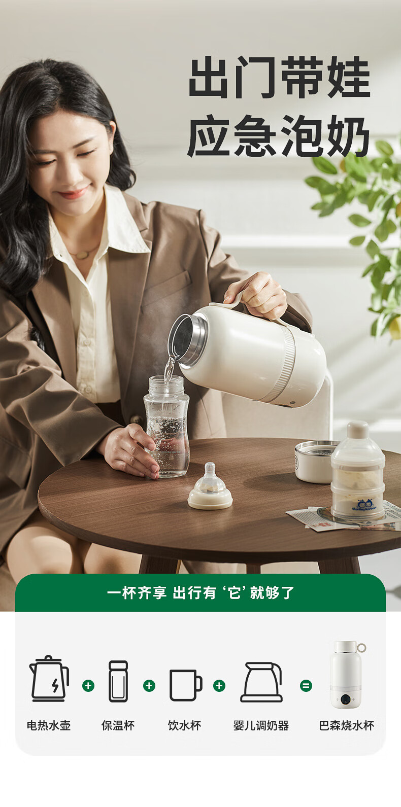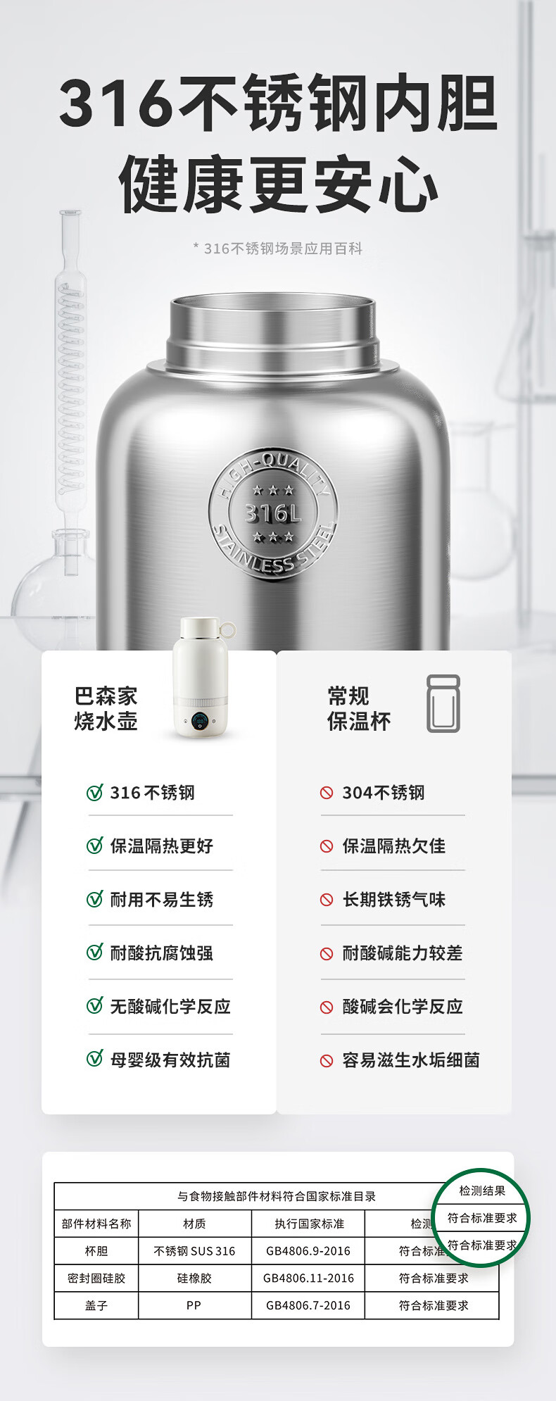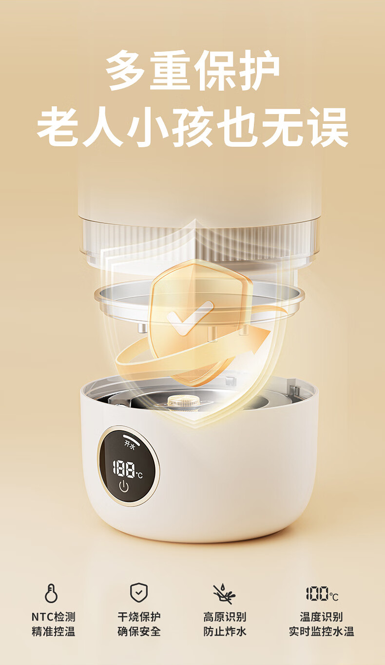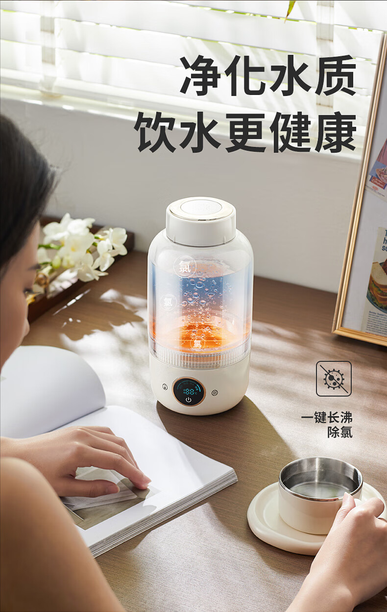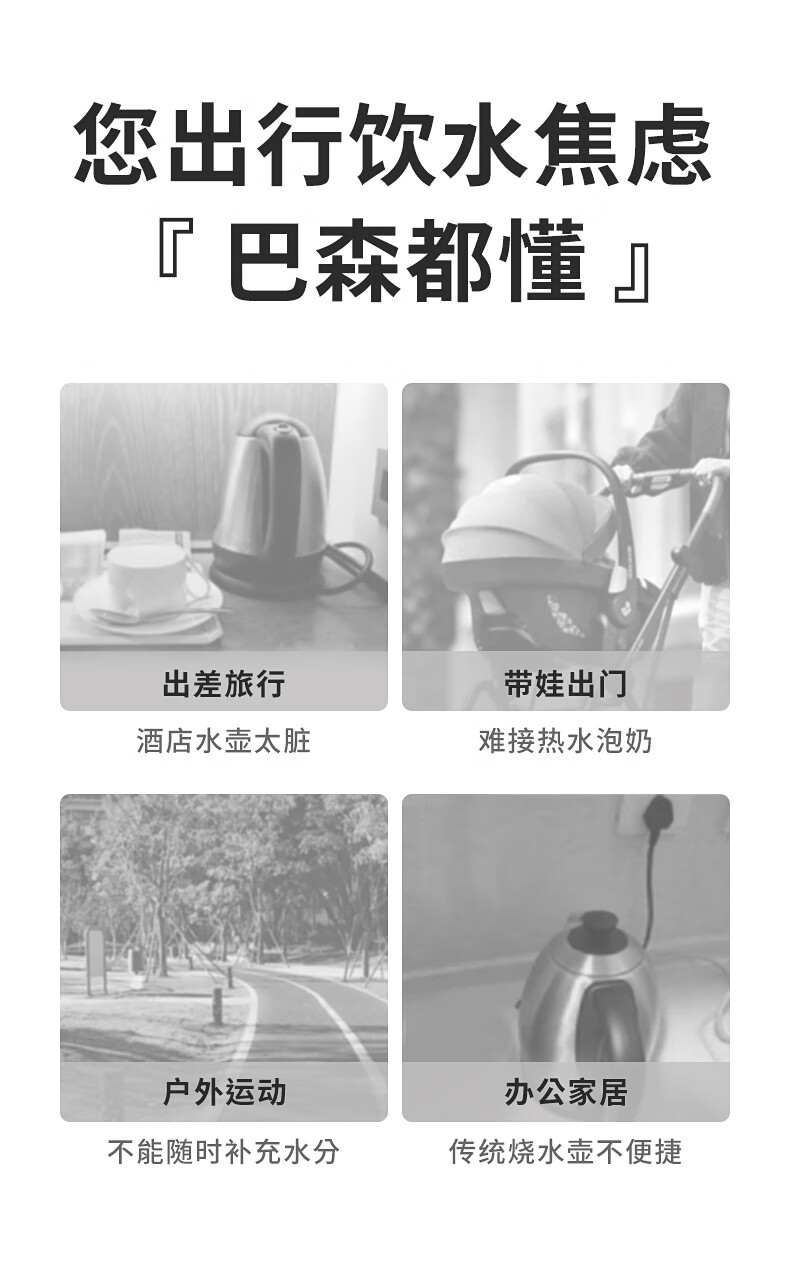【小家电】BASSENS巴森便携式烧水壶旅行保温316不锈钢电热水壶便携式烧水杯大容量真空恒温壶加热水杯可除氯BS-B90 HF