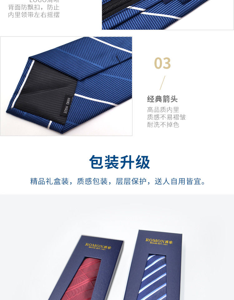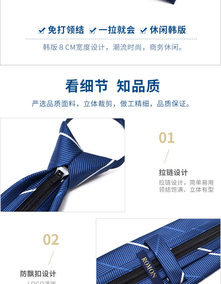 【盒装免打拉链领带】罗蒙领带男正装商务休闲上班结婚懒人领带