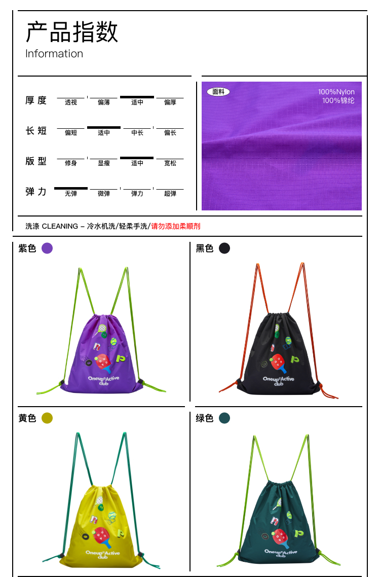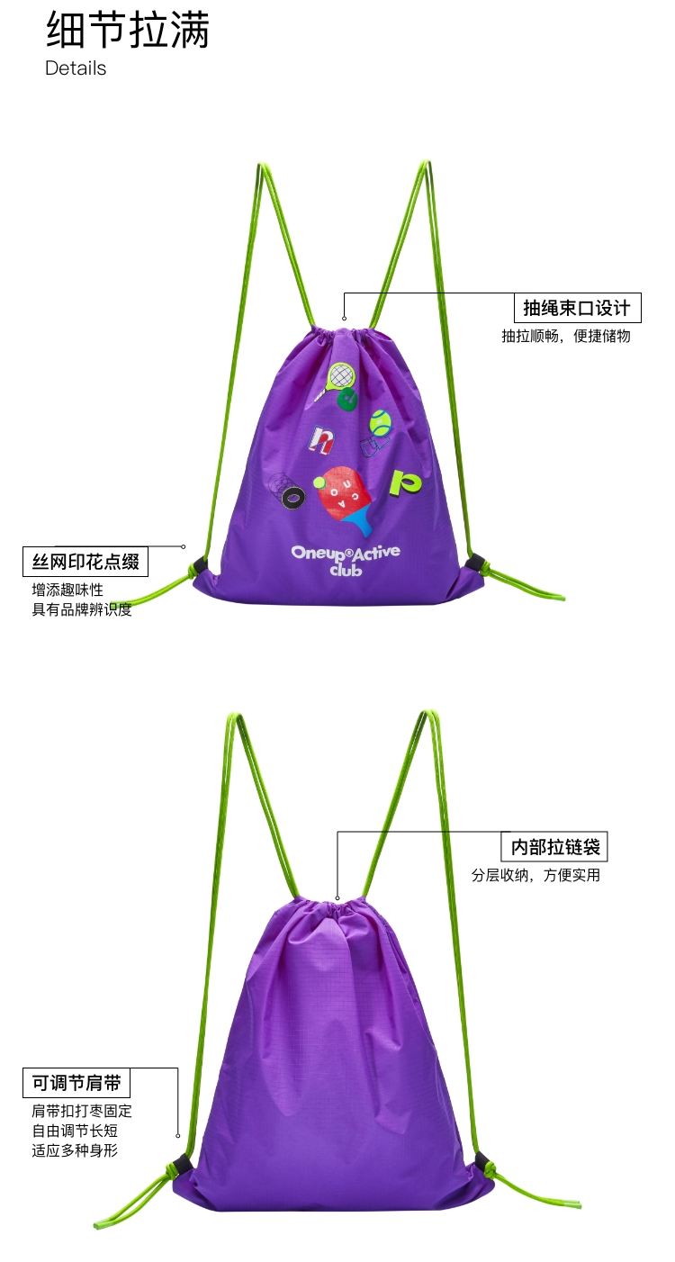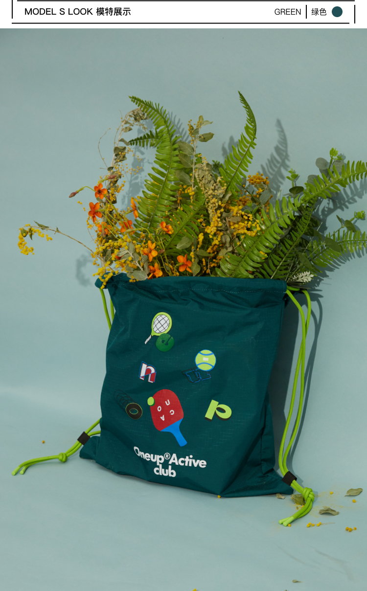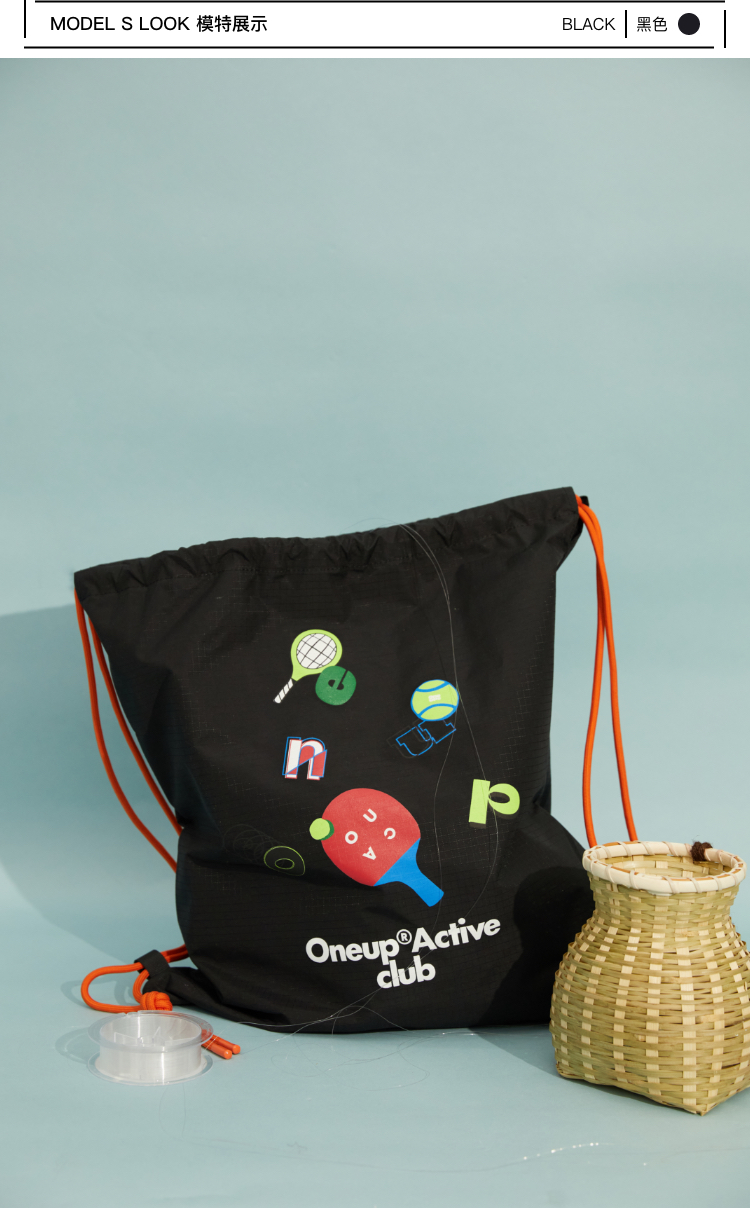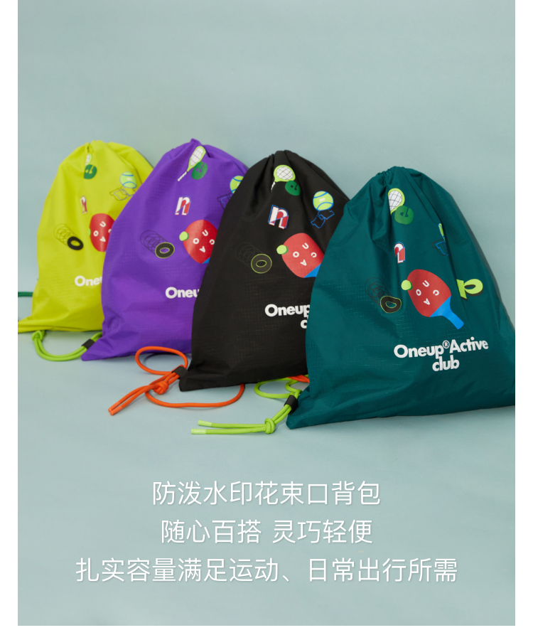 oneup防泼水印花束口背包