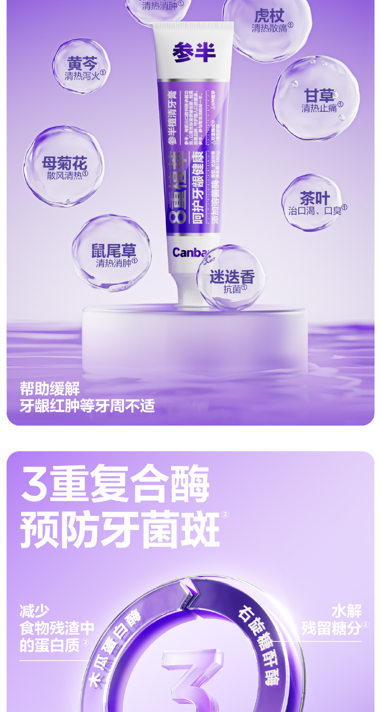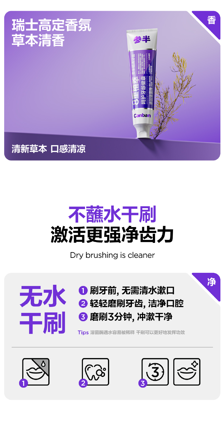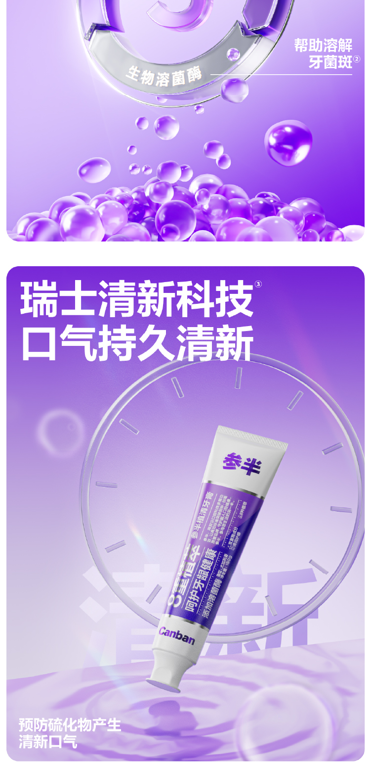 参半 植清溶菌酶清新舒缓护龈8重植萃 180g*2