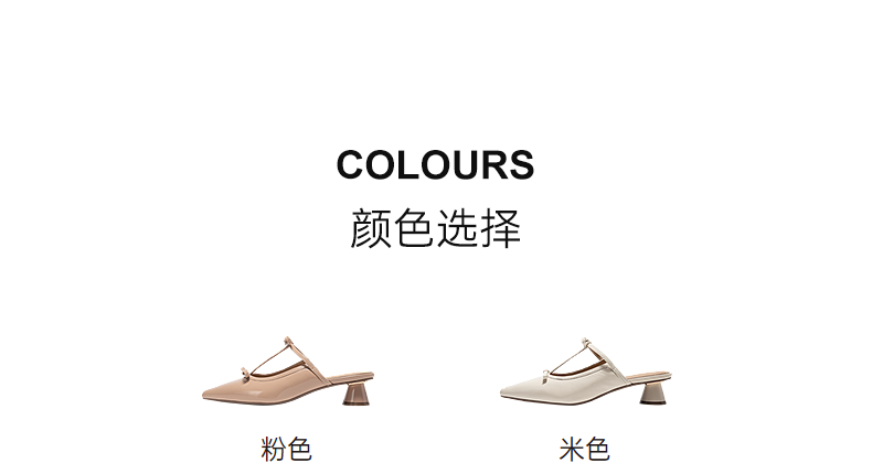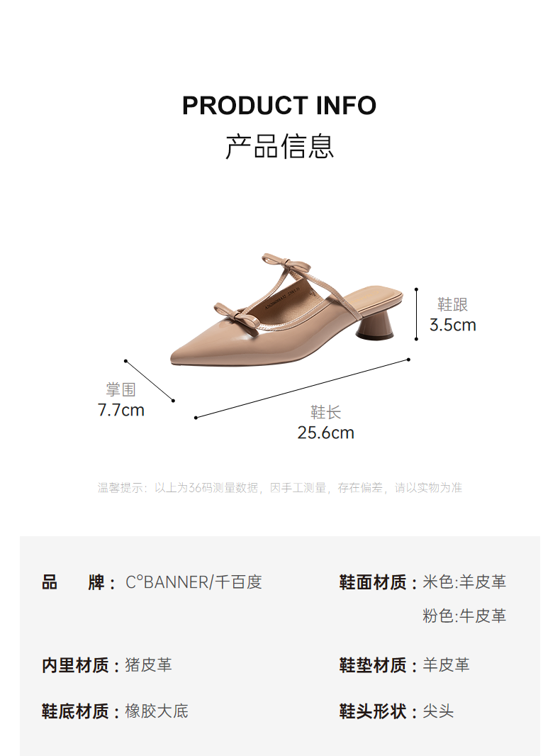 千百度粗中跟包头拖女2026夏季新款尖头蝴蝶结通勤外穿羊皮凉拖鞋A26206088