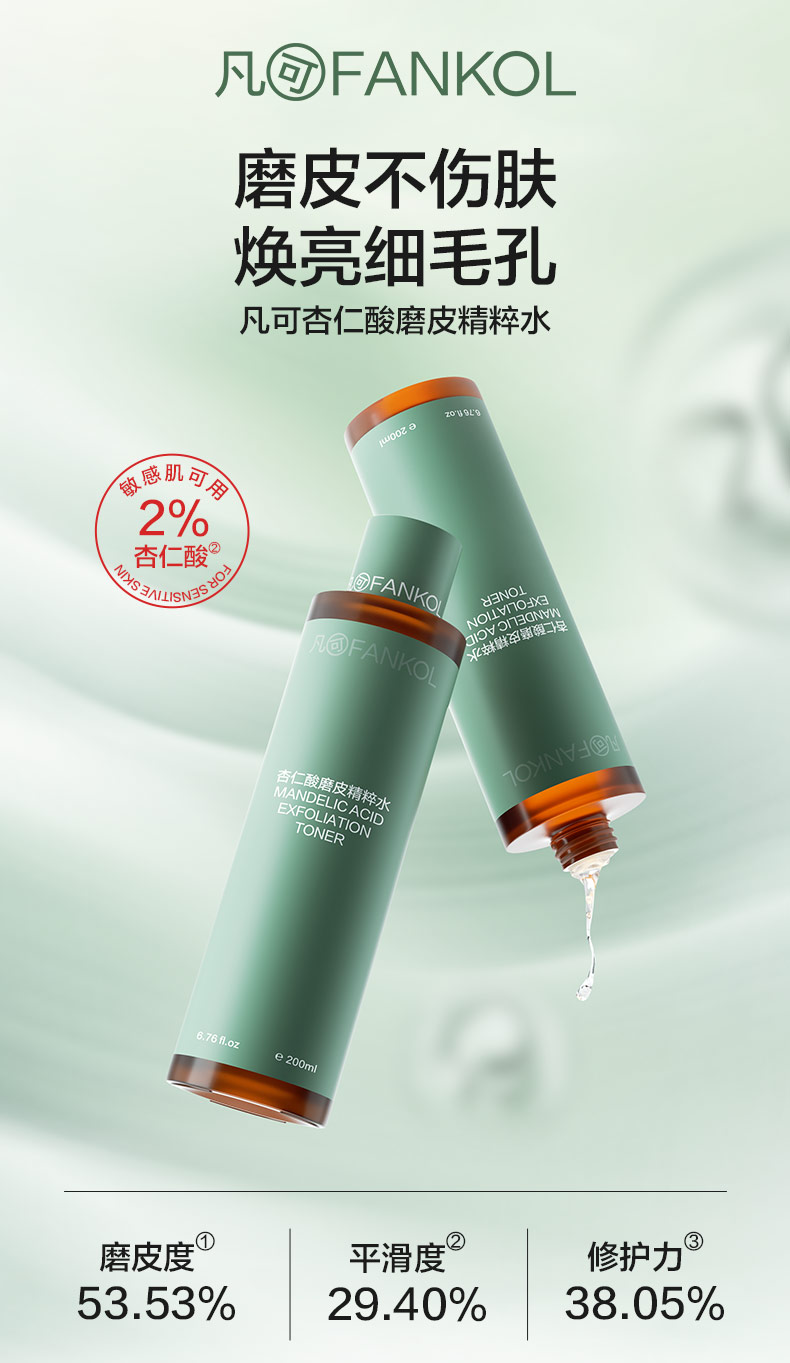 【社群专属】凡可杏仁酸磨皮水焕亮不伤肤 祛痘去角质抛光水修护提亮爽肤水