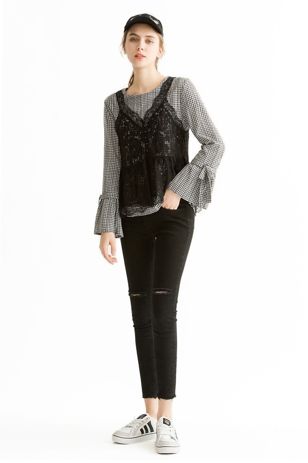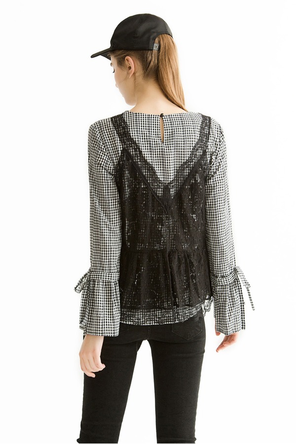 ROEM 仿两件式蕾丝格纹衬衫 1491