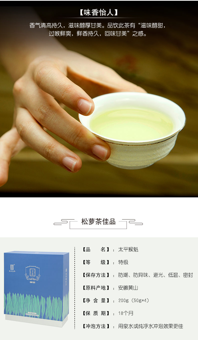 王光熙特级黄山太平猴魁224g云间高端礼盒