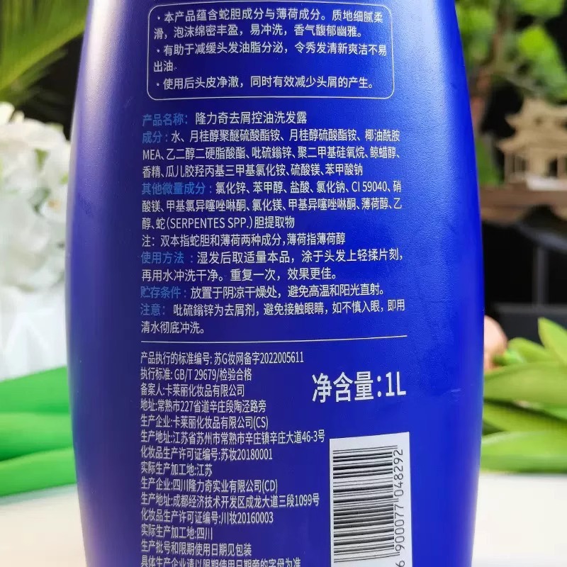 隆力奇洗发水新活力清爽控油去屑清洁柔顺滑洗发露套装去油洗头膏