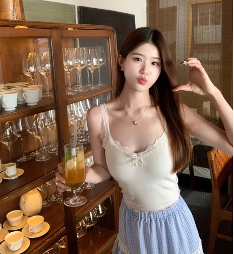 <曾小咸推荐> 蝴蝶结蕾丝花边吊带背心