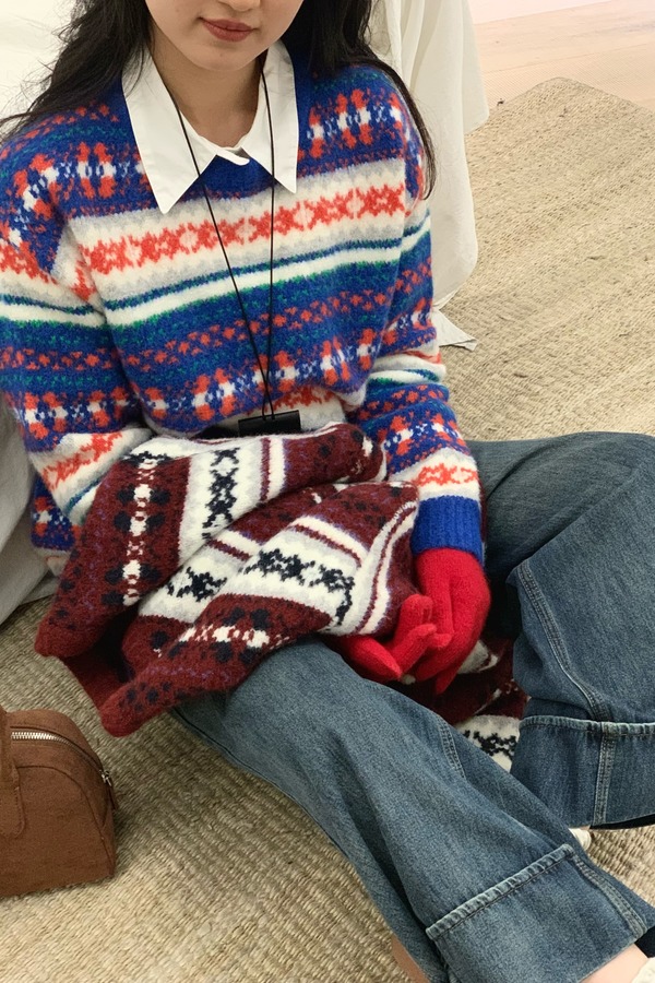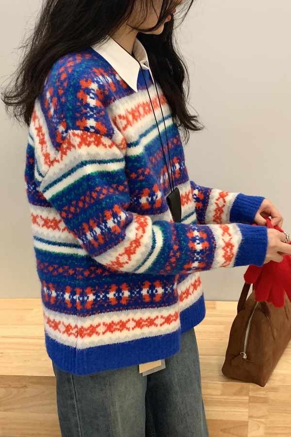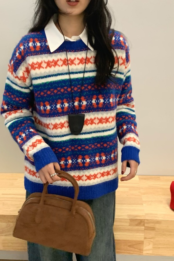 HAYES 高级氛围感拼色提花条纹毛衣 21558