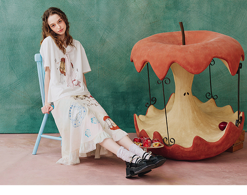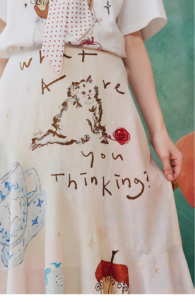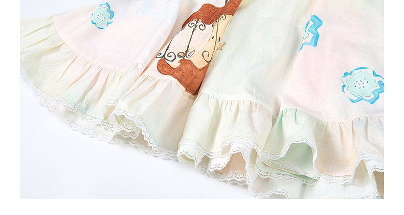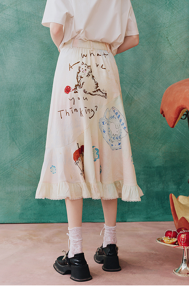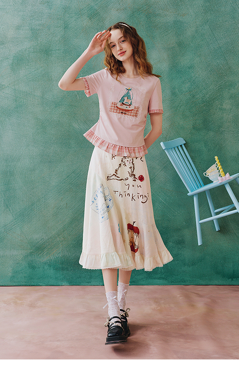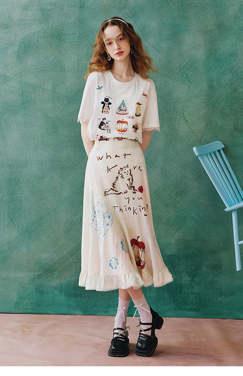 两三事 魔幻派对 2025夏季新款小清新印花荷叶边摆a字半身裙长裙