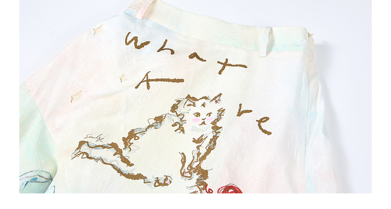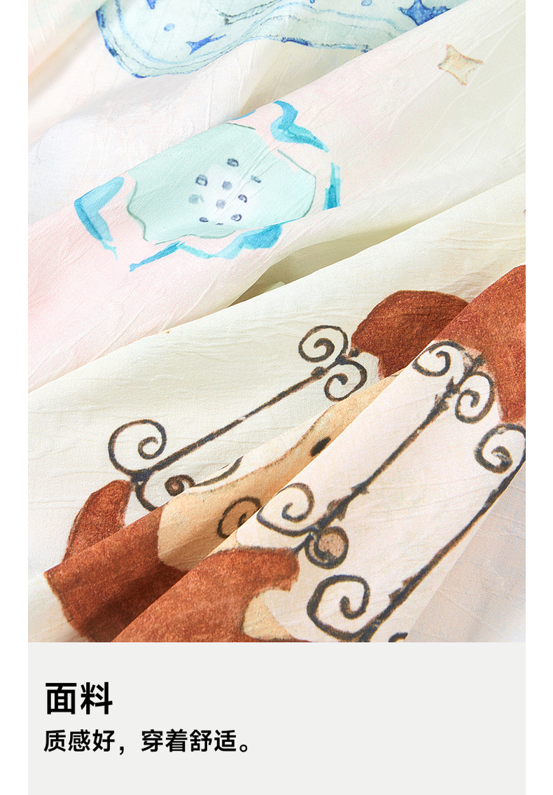 两三事心向莫奈 夏季新款文艺风油画印花口袋长袖衬衫女宽松