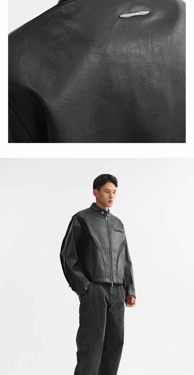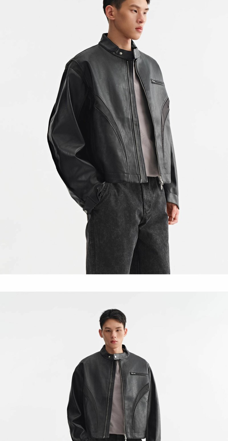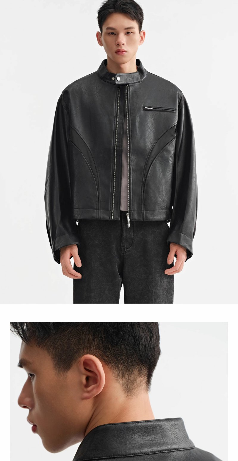 CHINISM赤尘 黑色环保PU立领机车夹克男冬季男士新款美式皮衣外套