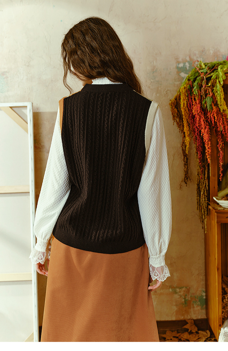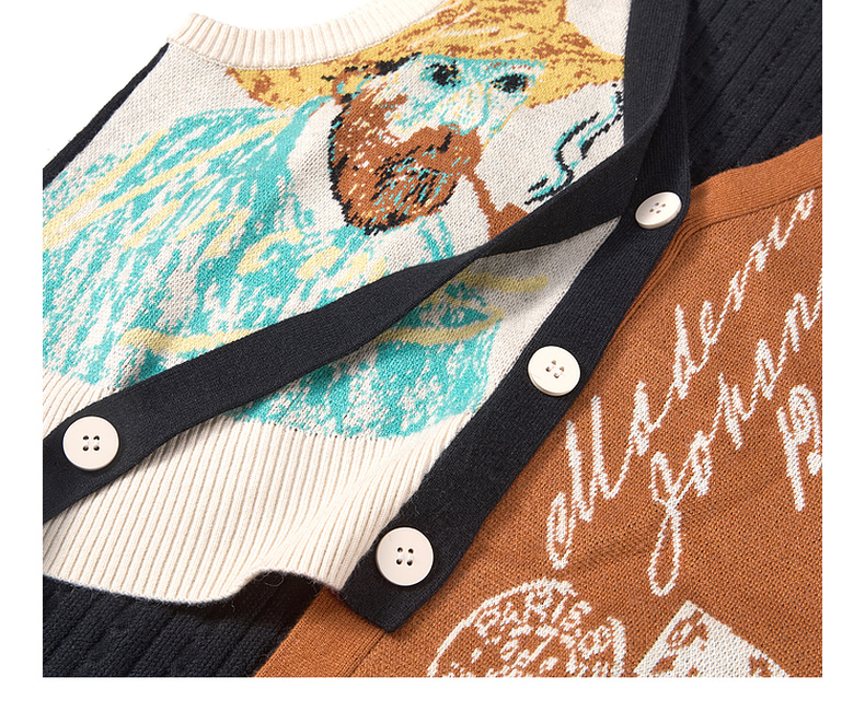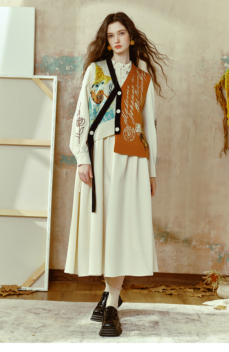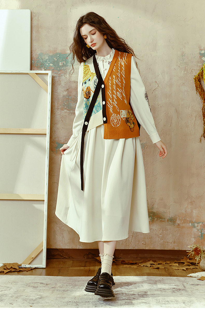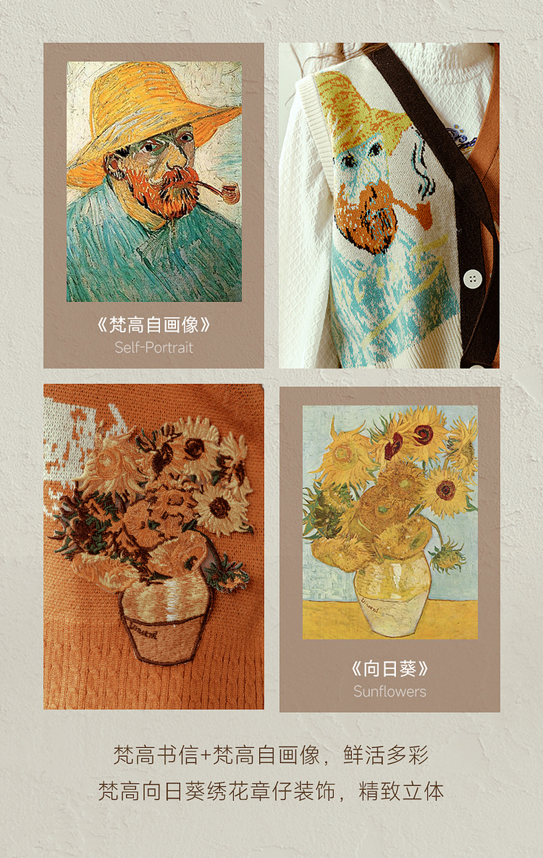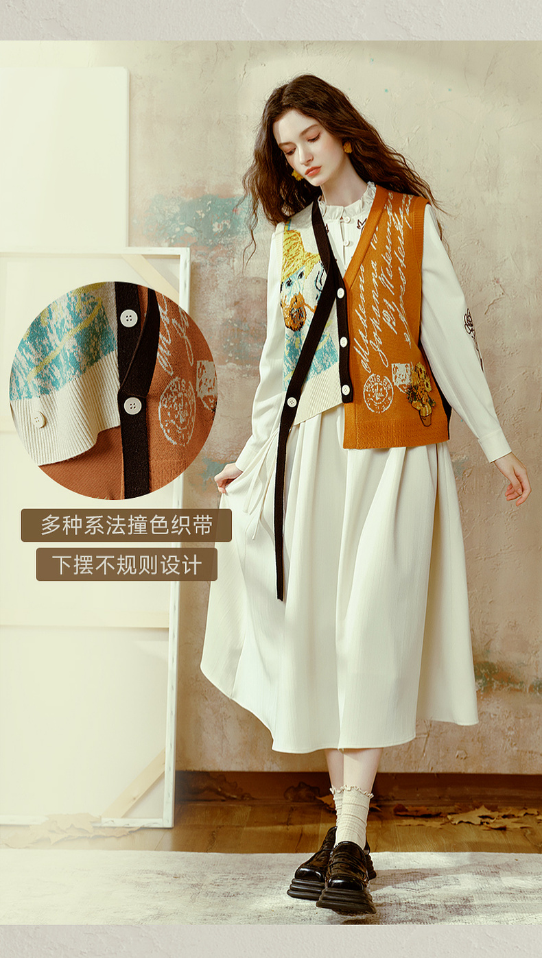 两三事梵高文艺 梵花拾忆 2024冬季新款绣花不对称无袖针织开衫女
