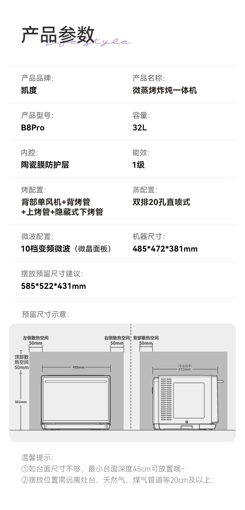 【蒸汽冷凝】凯度B8pro微蒸烤炸四合一体机台嵌两用蒸烤箱微波炉