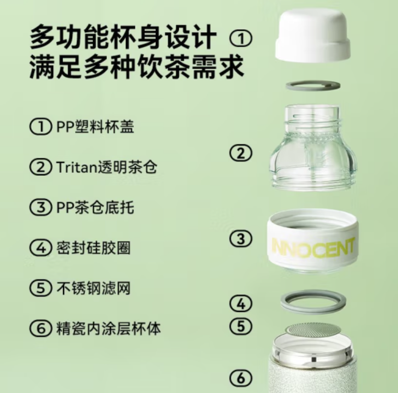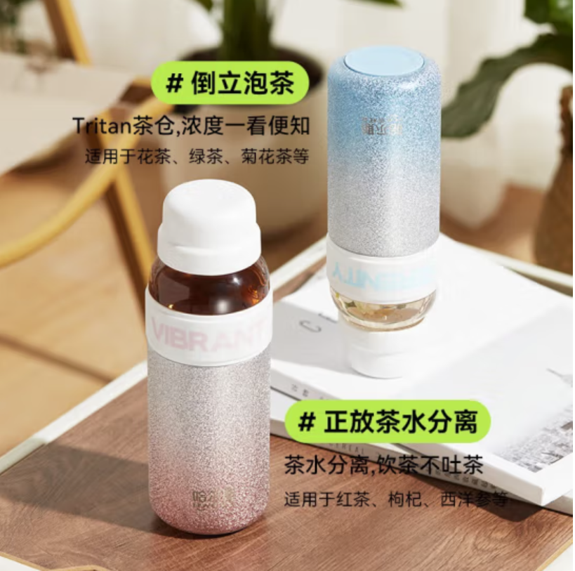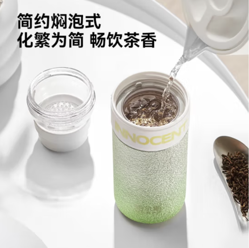 哈尔斯 茶水分离保温杯女304不锈钢男便携办公室茶水杯子300ml 淘气