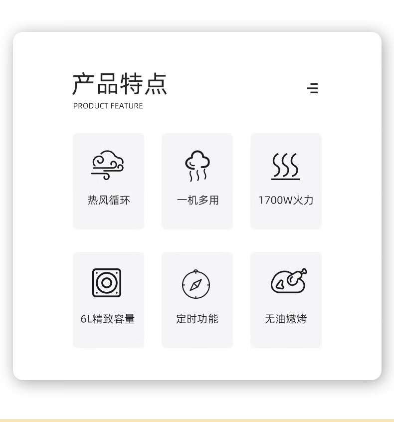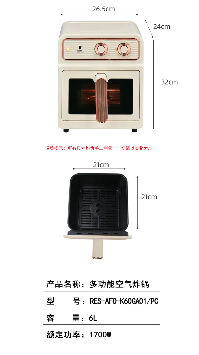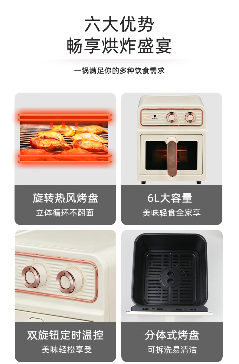 【小家电】REVERE家用6L智能空气炸锅RES-AFO-K60GA01/PC HF