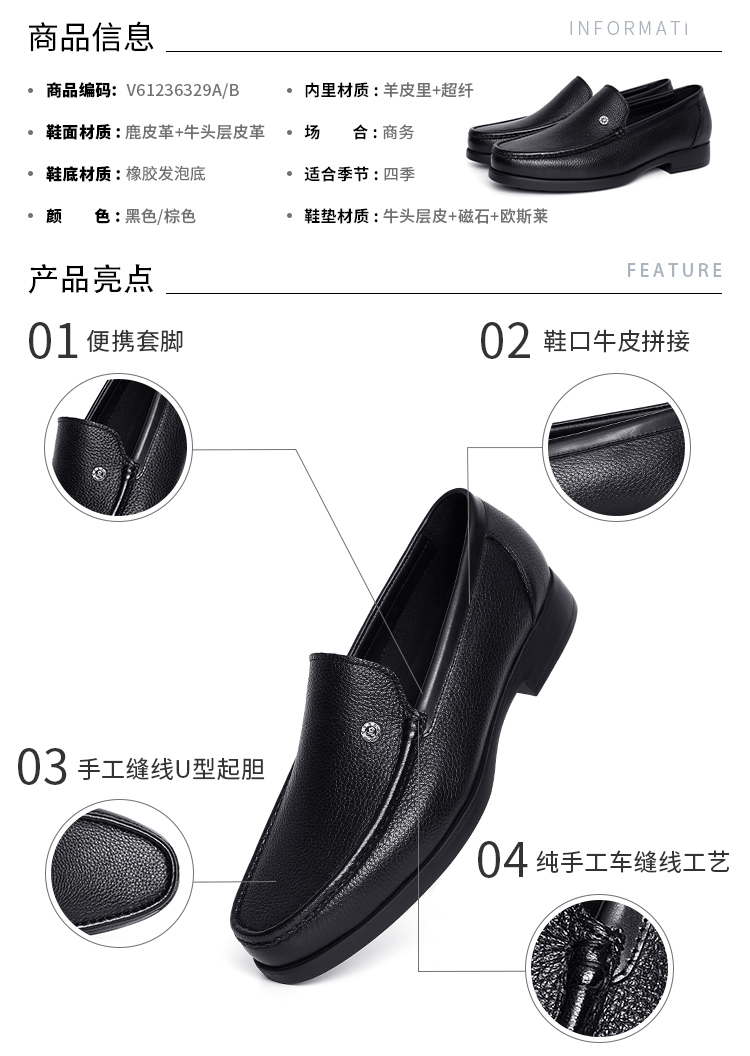 鹿皮+牛皮一脚蹬商务休闲鞋男士皮鞋懒人鞋男鞋通勤男皮鞋乐福鞋
