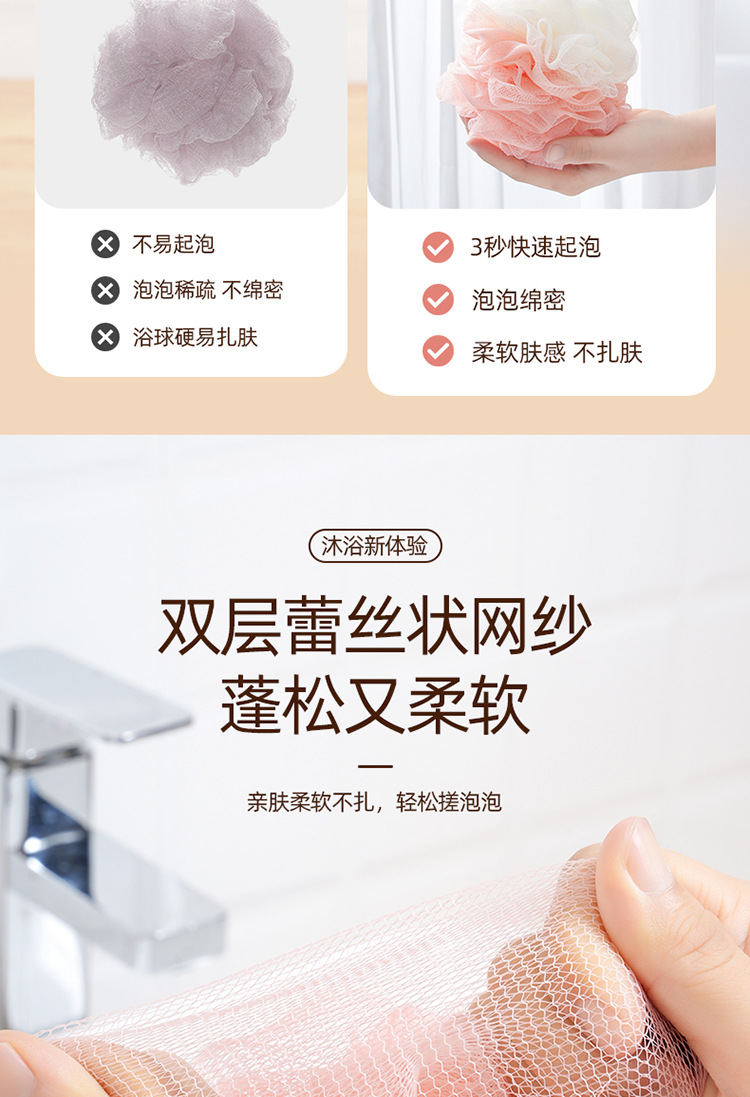 2件9.9包邮!浴花浴球不散花 加大沐浴洗澡巾 搓背彩色泡泡浴双色浴花球