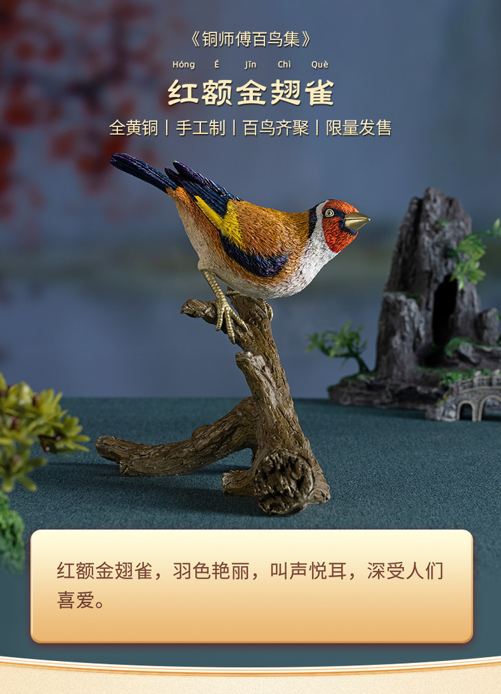 铜师傅 铜摆件《铜师傅百鸟集》之红额金翅雀 家居饰品 桌面摆件