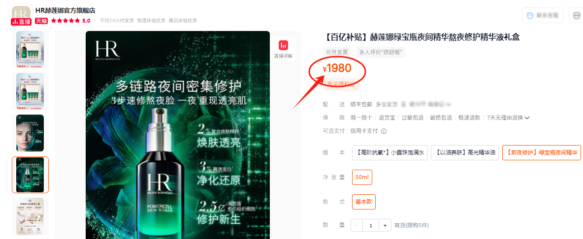 【品名】赫莲娜绿宝瓶夜间精华8ml