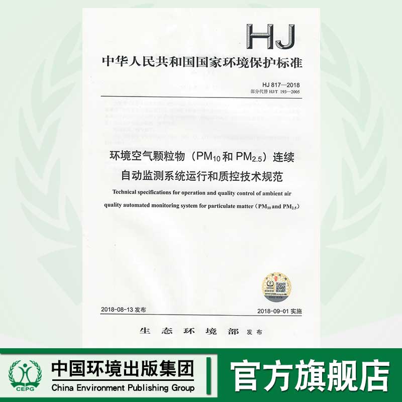 HJ 817-2018环境空气颗粒物(PM10和PM2.5)连续自动监测系统运行和质控技术规范 135111689 中国环境