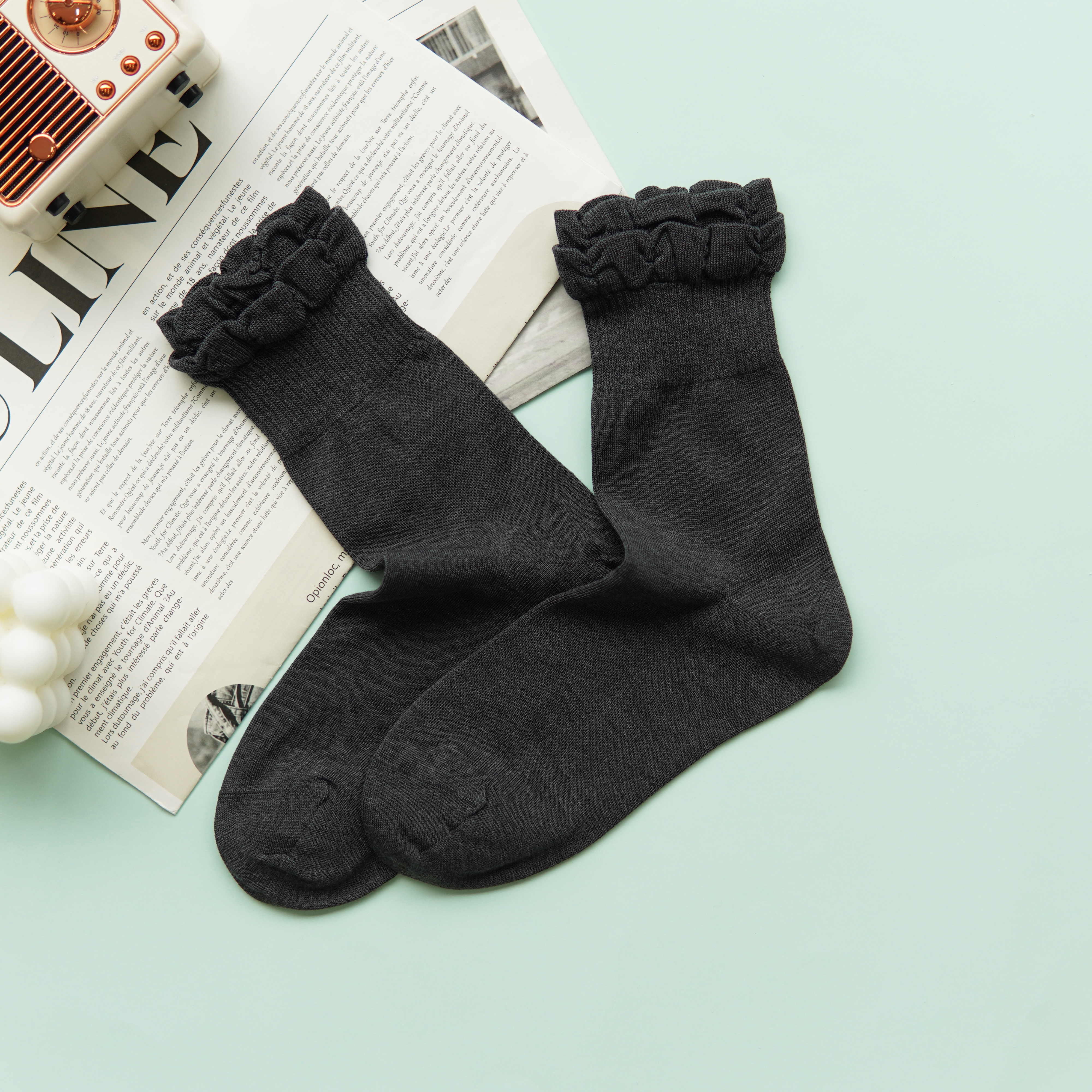 【2双装】女士超细羊毛泡泡口时尚袜中长筒袜子【6双6折 2522809】