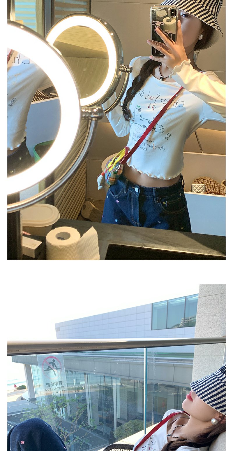 【89元任选2件】新品现货秒杀!卖完下架不再补 !微信粉丝打折价!!猫咪字母印花修身短款T恤6.19
