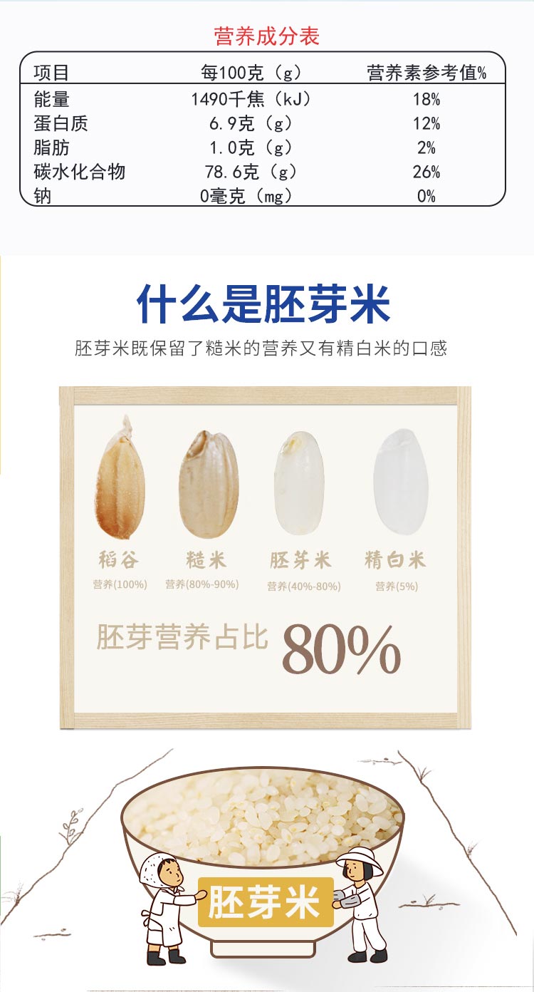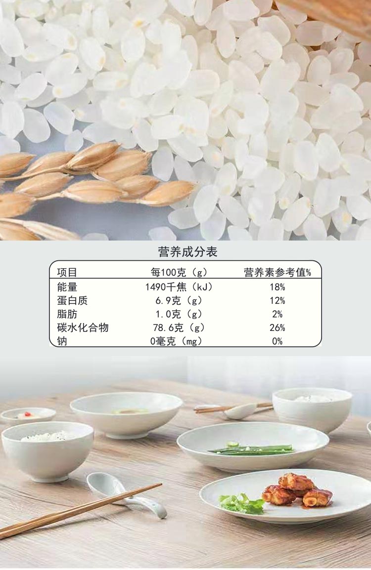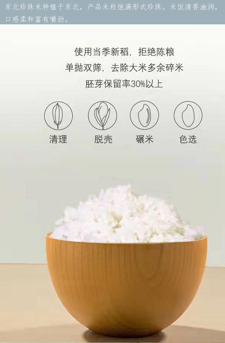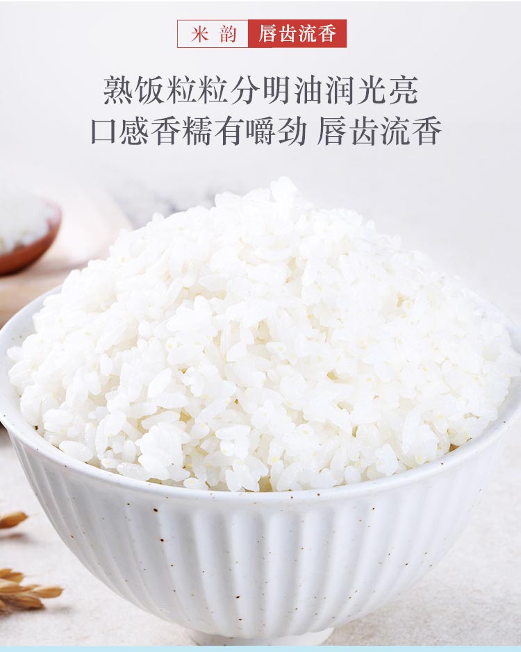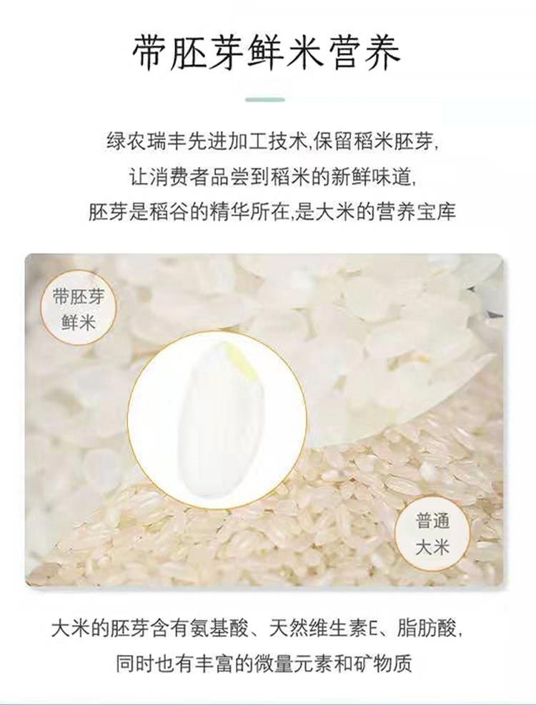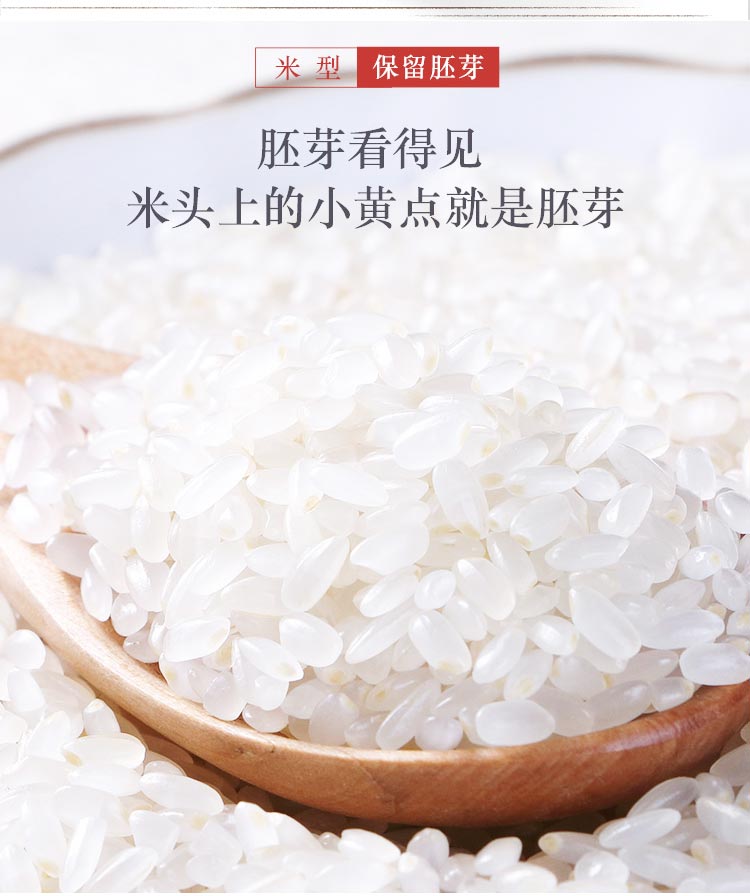 【卖点介绍】:选用当年,一年一季珍珠稻,采用先进工艺,保留每一粒大米的胚芽