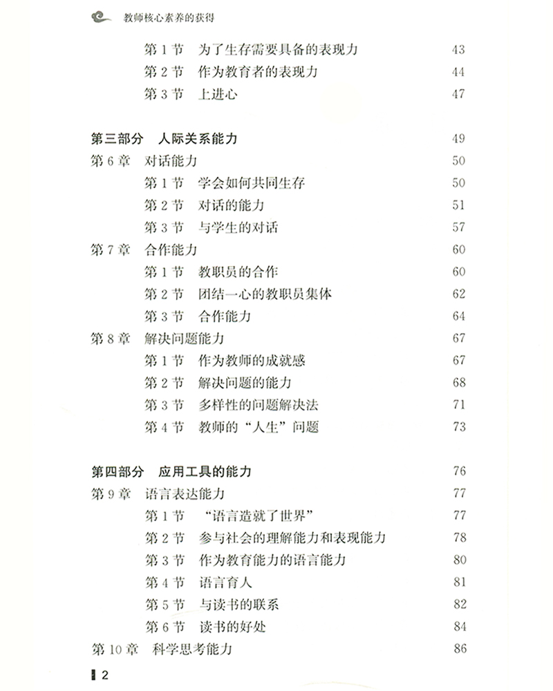 随着社会高科技化和知识高度化的转换,世界各国的教师每天都处于繁忙的学习状态中。在校内,他们日复一日忙于指导学生的学习内容,“教什么”和“如何教”深受全球乃至各国的教育方面和人文方面的影响。在校外,教师们积极学习新的知识,成为终身学习社会中坚持不懈的学习者的榜样。在21世纪遍及全球范围的教育改革中,世界各个国家在培养人才时,开始注重培养学生具有横跨各个学科的、综合的核心能力。为了培养学生的核心素养,要求教师具有更多的专业教育知识和更高的教学能力。为了获得优秀的教育核心素养,许多教师必须阅读数量繁多的教育杂志,学习与专业学科有关的前沿知识,开发新的教材和先进的教学法,加强与校长、同事、家长和社区人们之间更多的合作关系。本书为坚持不懈学习的教师们抛砖引玉,为他们如何获得以下这些实践性教育核心素养而提供帮助:例如,灵活使用语言和科学性思考等工具的能力,展望未来的能力,讲述故事的能力,表现能力,自我启发的能力,与他人对话、合作等的人际交往的能力,以及反省的能力。