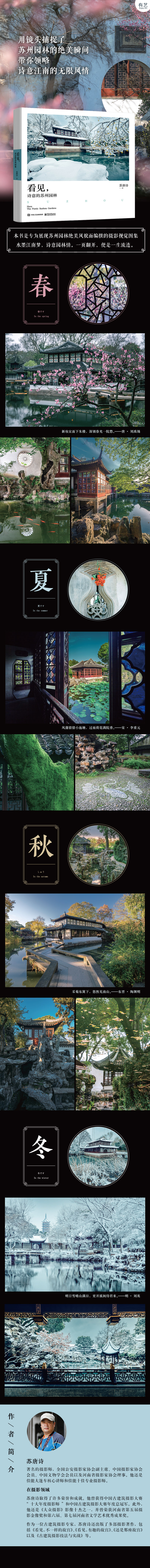 看见 诗意的苏州园林 为苏州园林绝美风貌而编撰的摄影视觉图集 精心收录苏唐诗摄影师所拍摄的120幅苏州园林高清照片