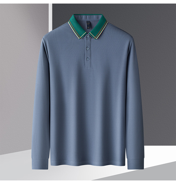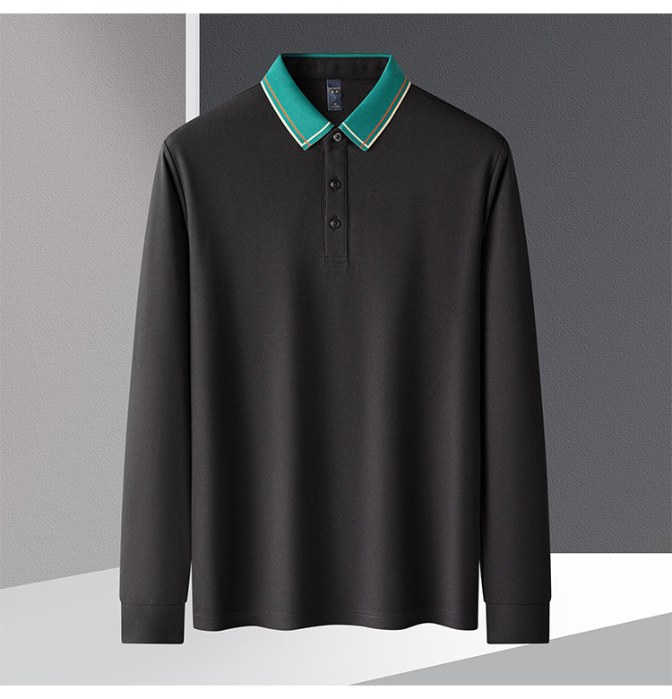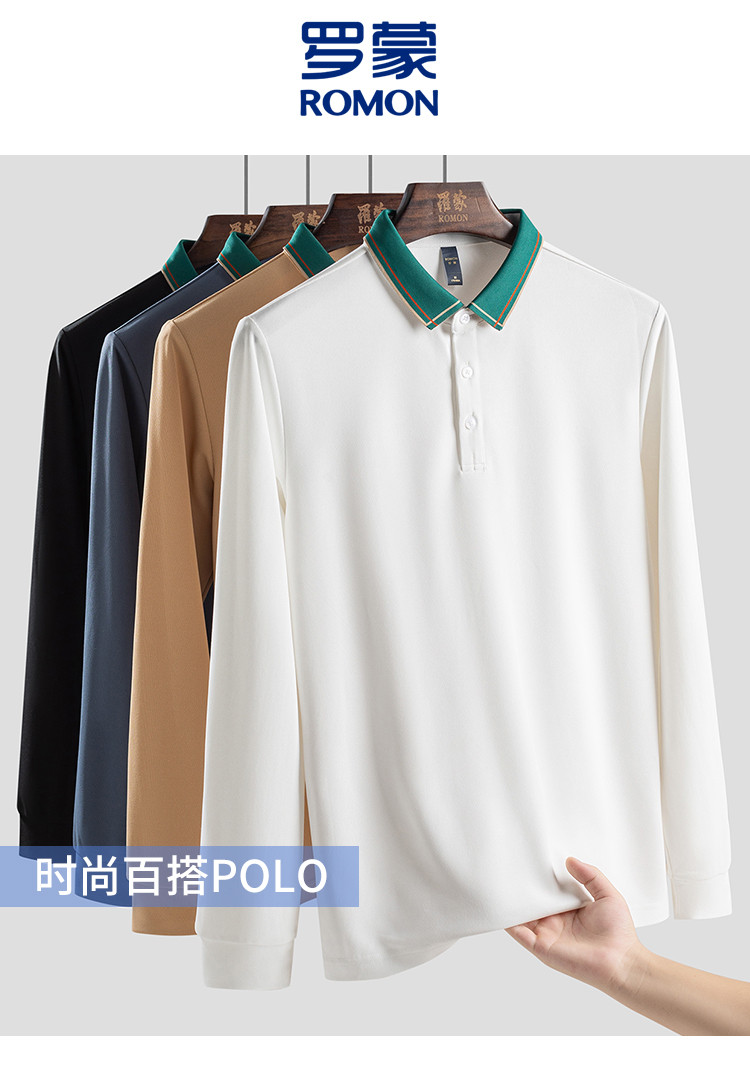 【撞色领】罗蒙春秋男士仿丝光polo衫男长袖t恤男商务男polo衫长袖