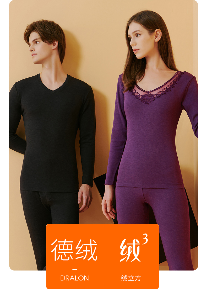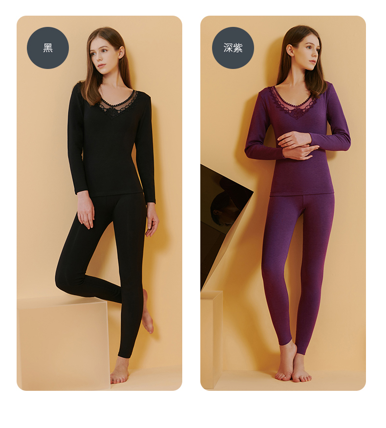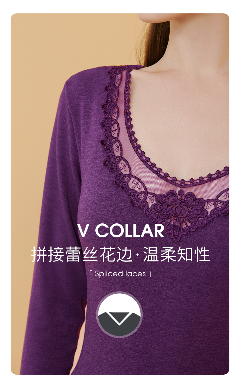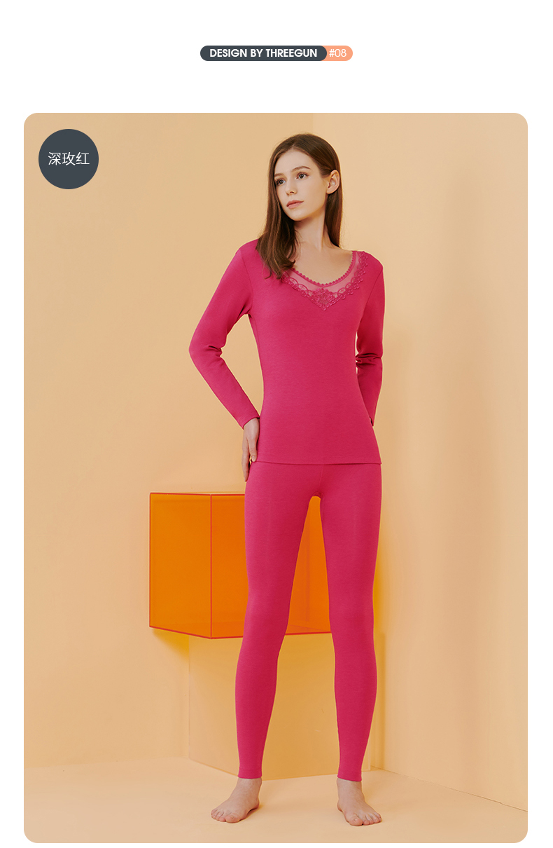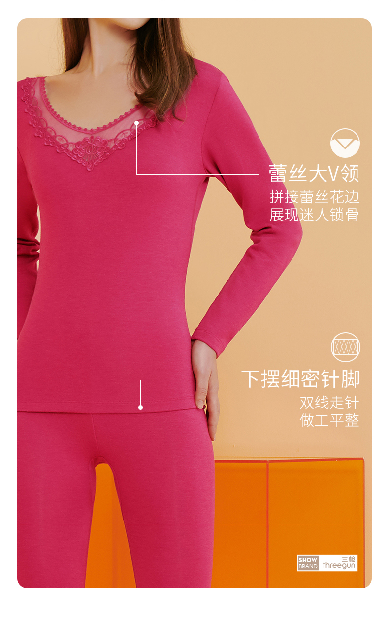 Threegun三枪 【舒暖德绒】花边V领女士保暖内衣套装-22540D921