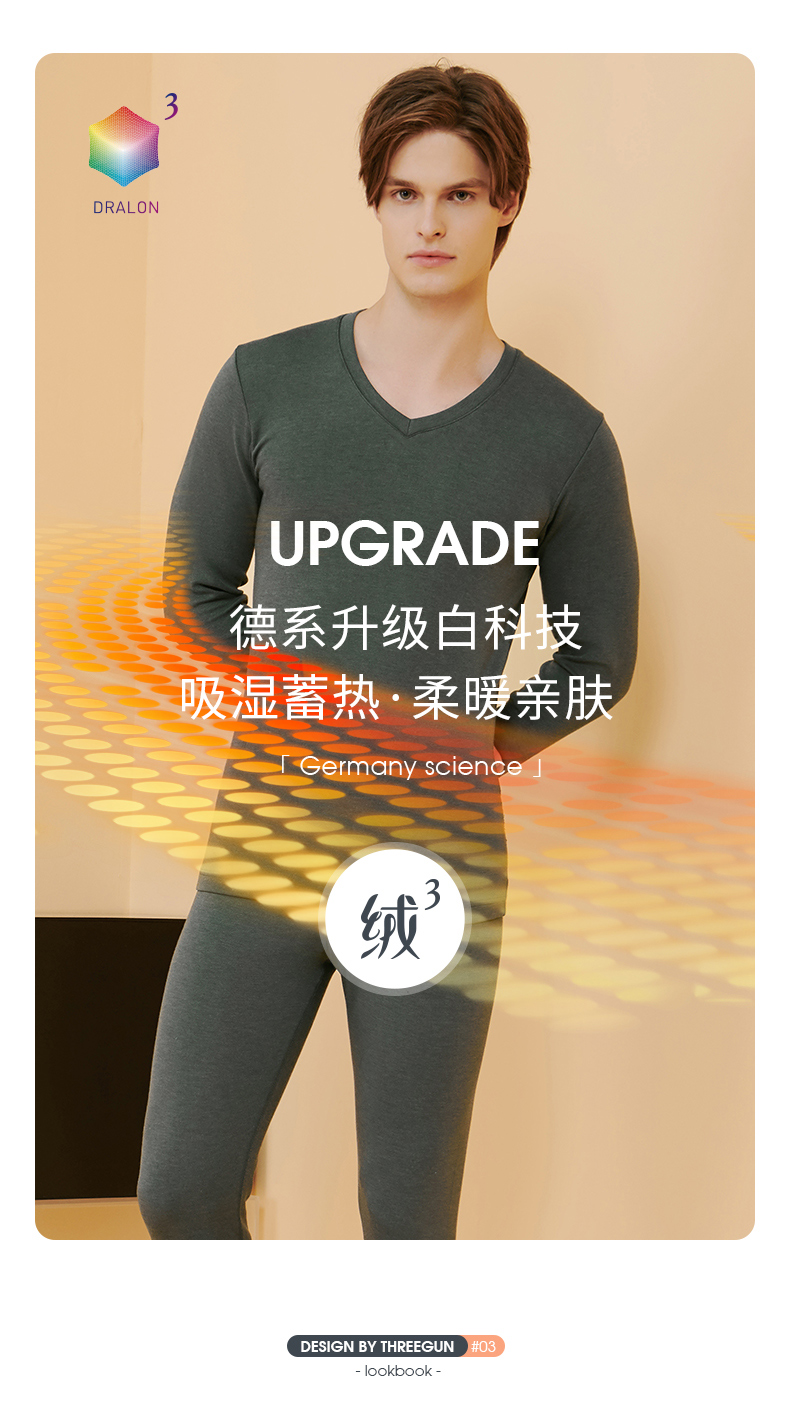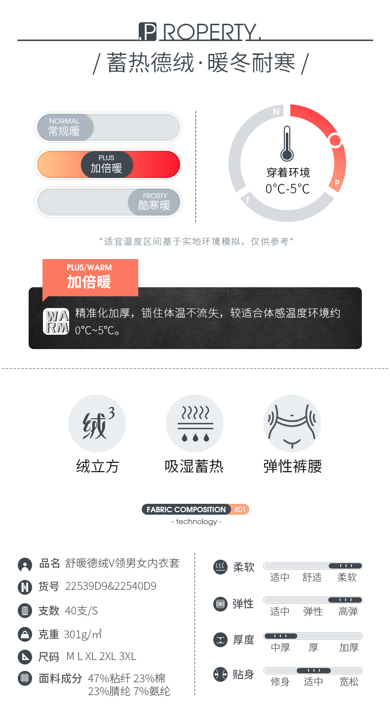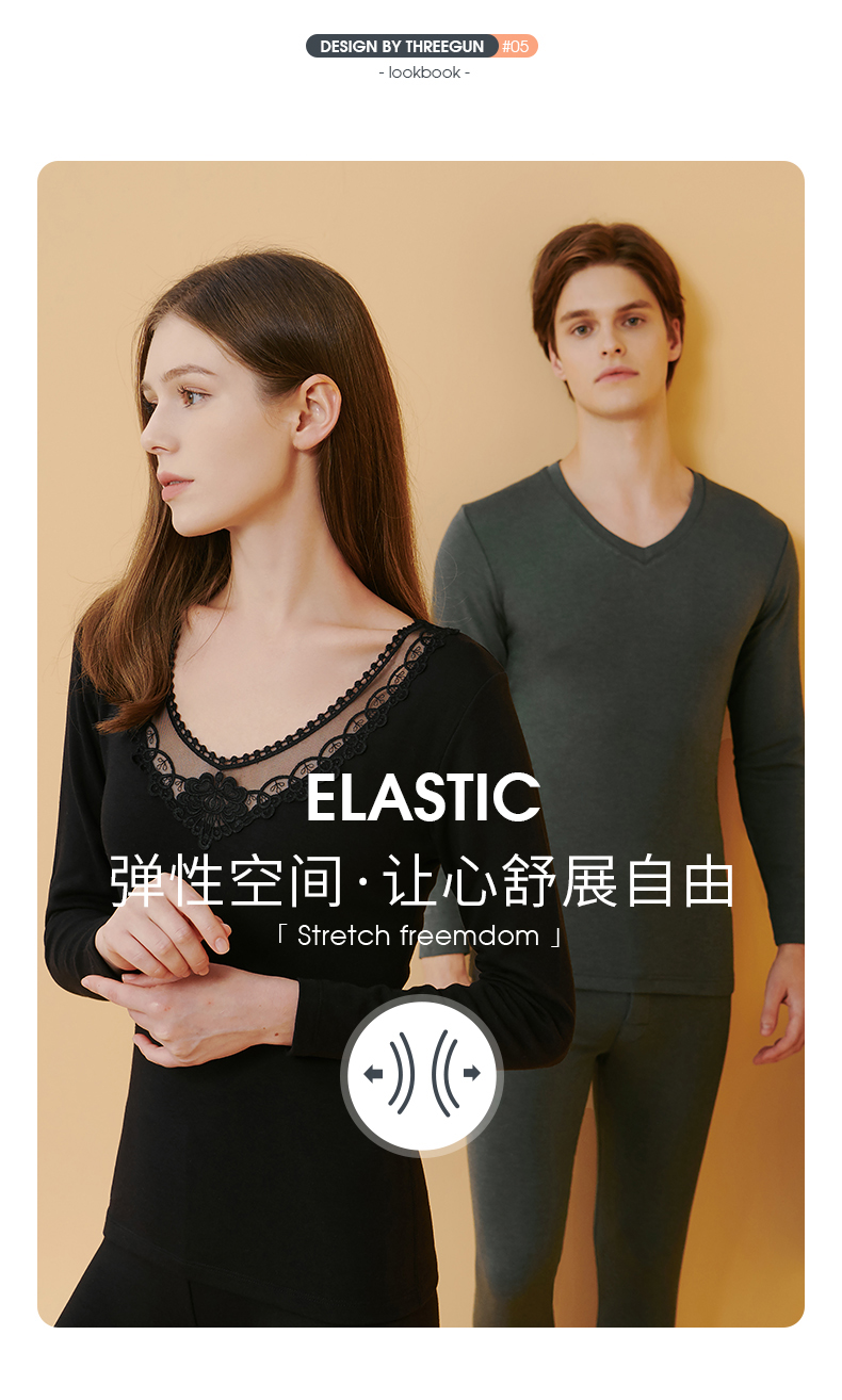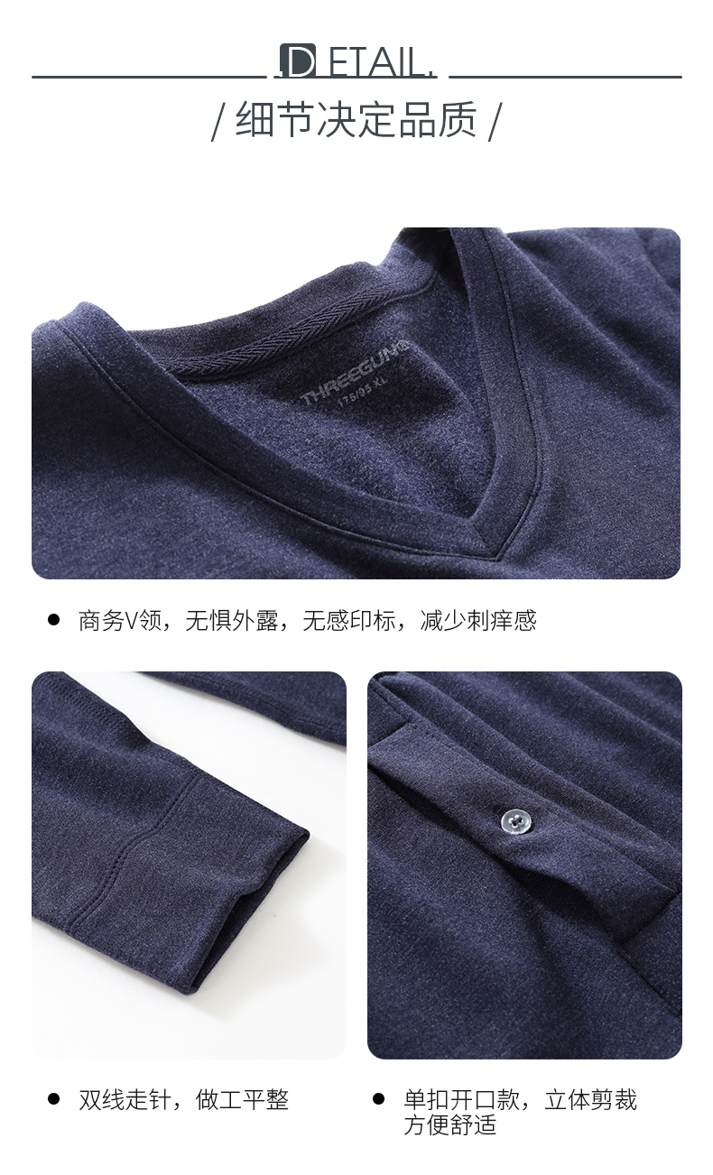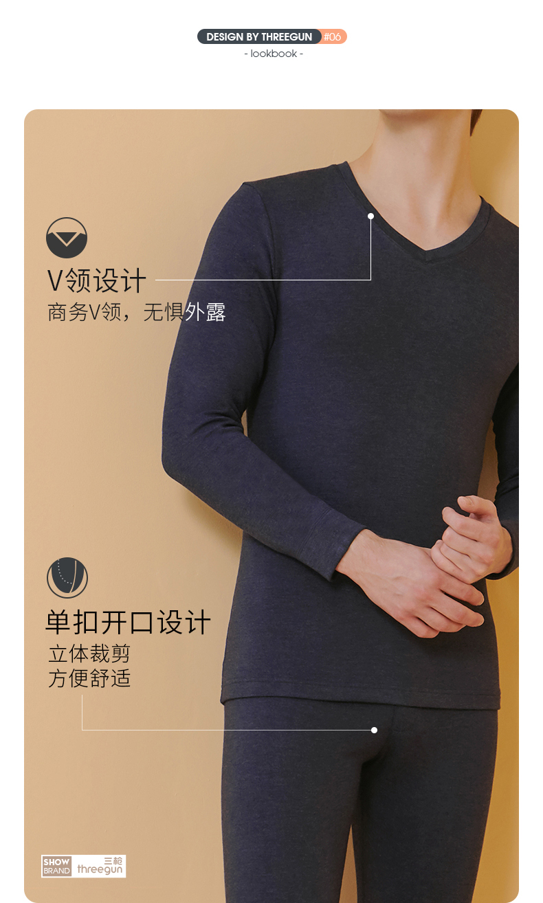 Threegun三枪 【舒暖德绒】花边V领女士保暖内衣套装-22540D921