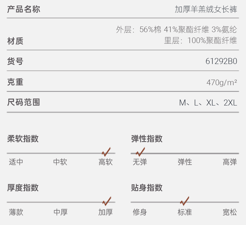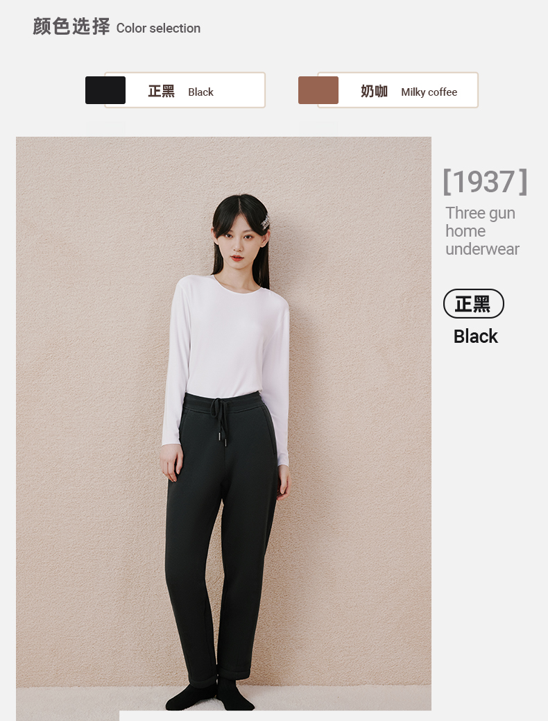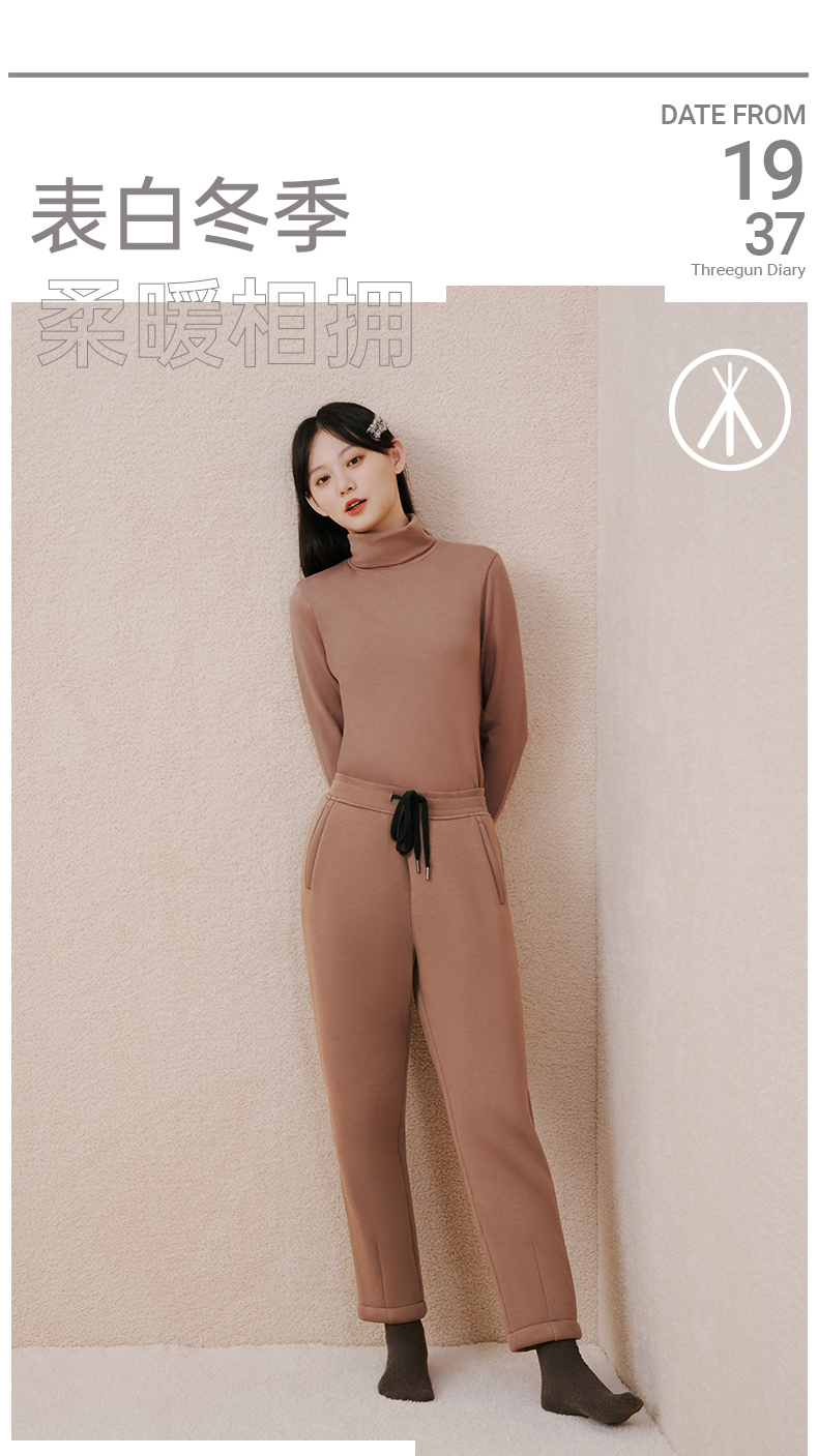 Threegun三枪 【加厚羊羔绒】女士休闲家居保暖长裤-61292B011