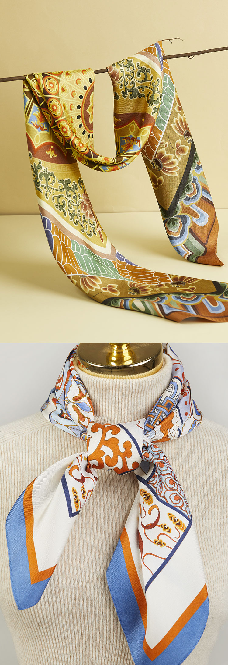 牛首山万事利联名步步莲华双面印花方巾敦煌风桑丝巾礼盒妈妈生日