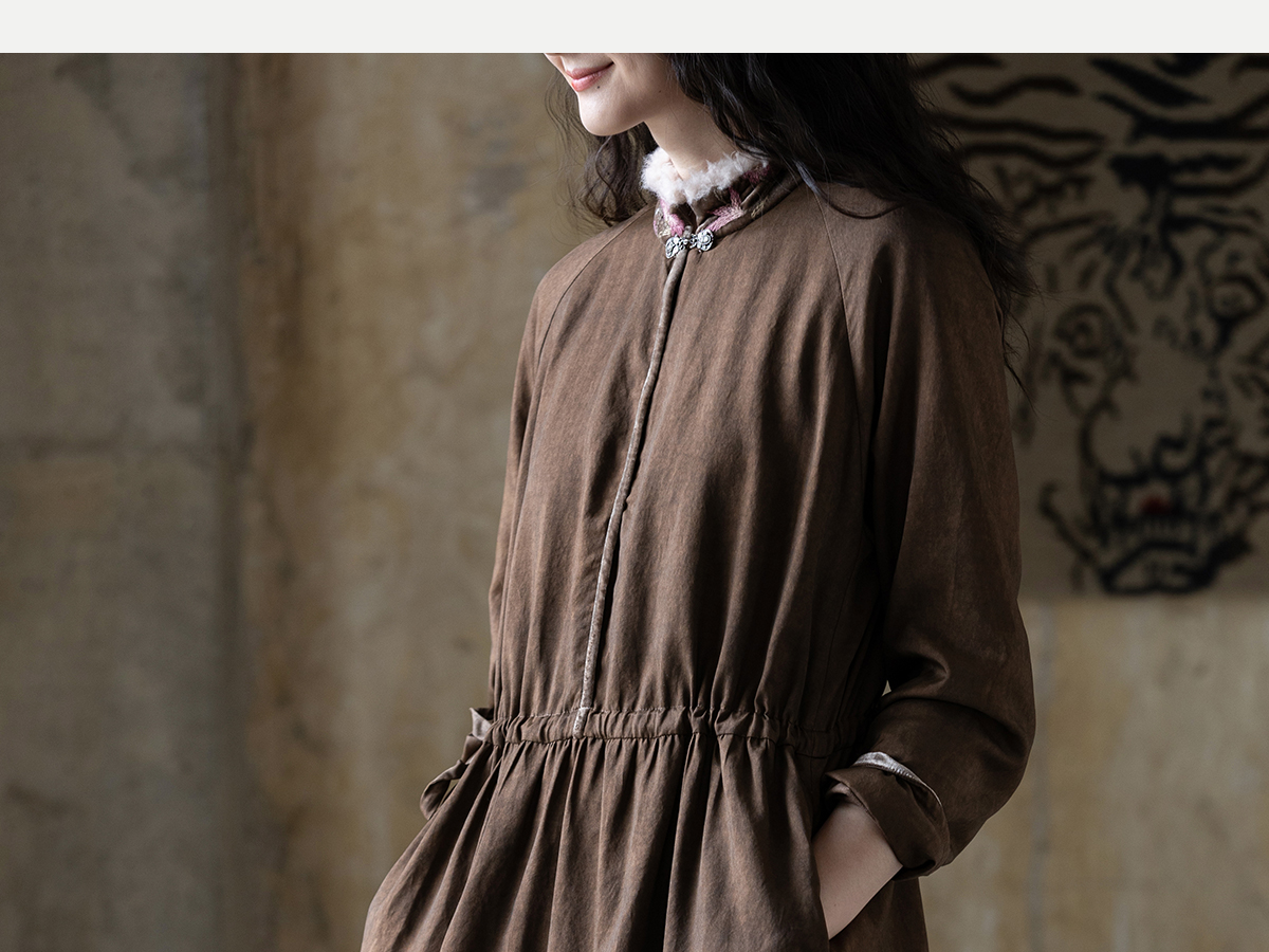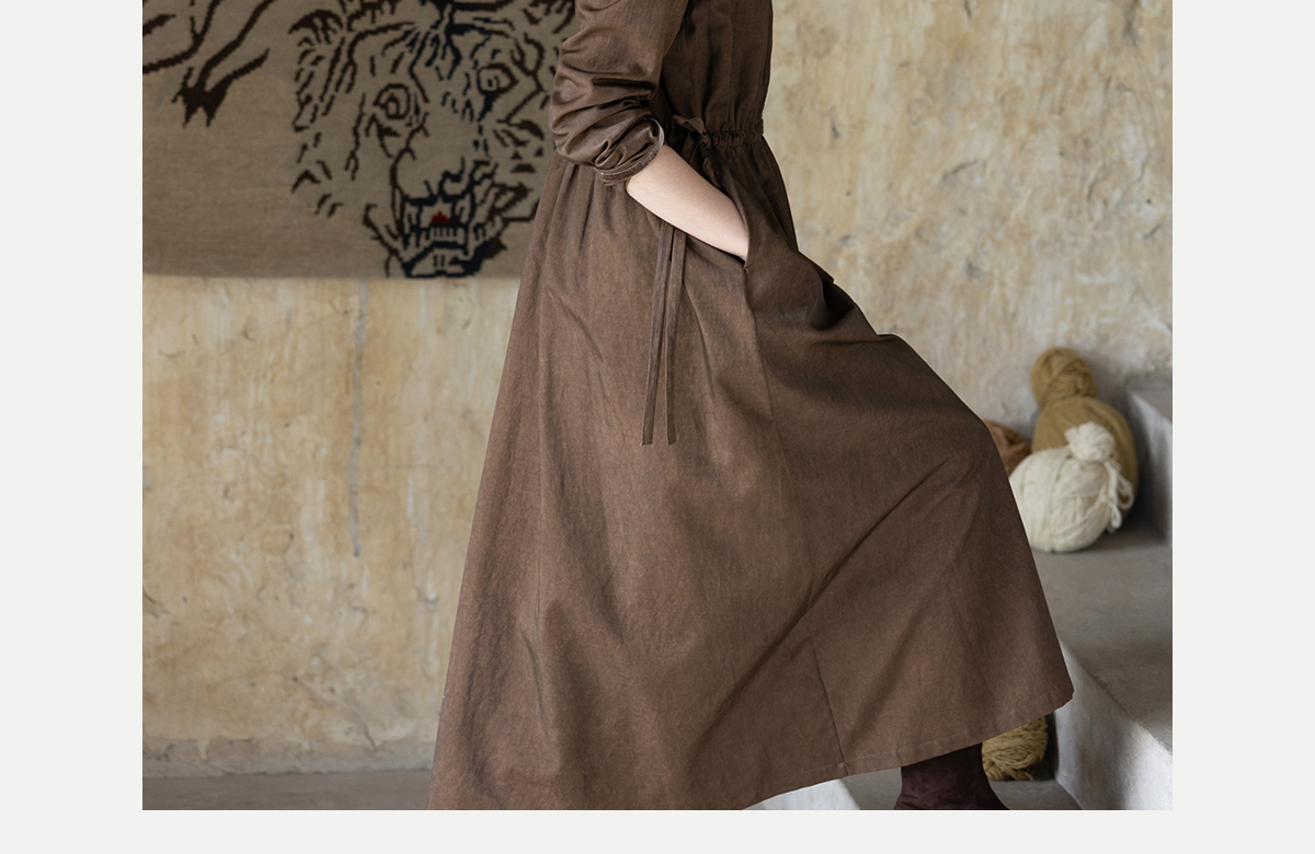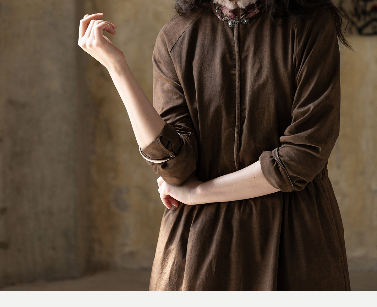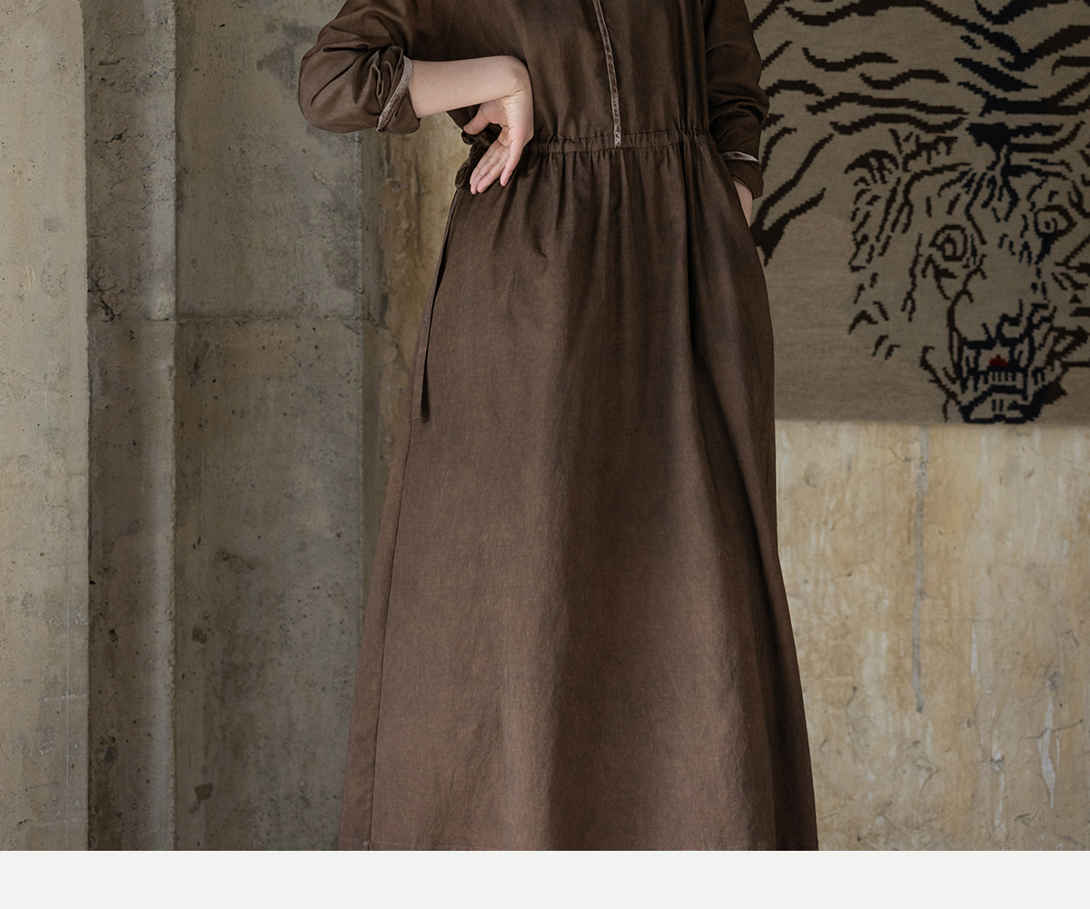牧衣游原创 丝棉手工刺绣连衣裙新款复古民族风宽松文艺长裙 松松