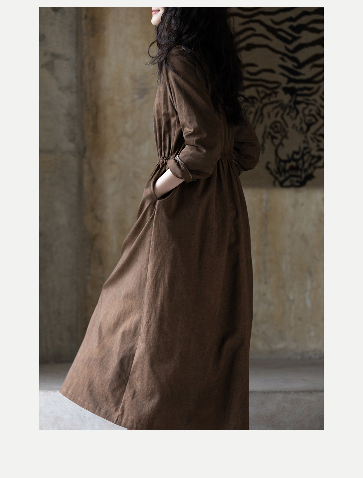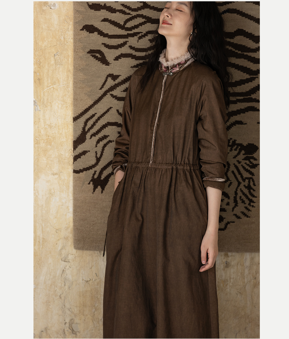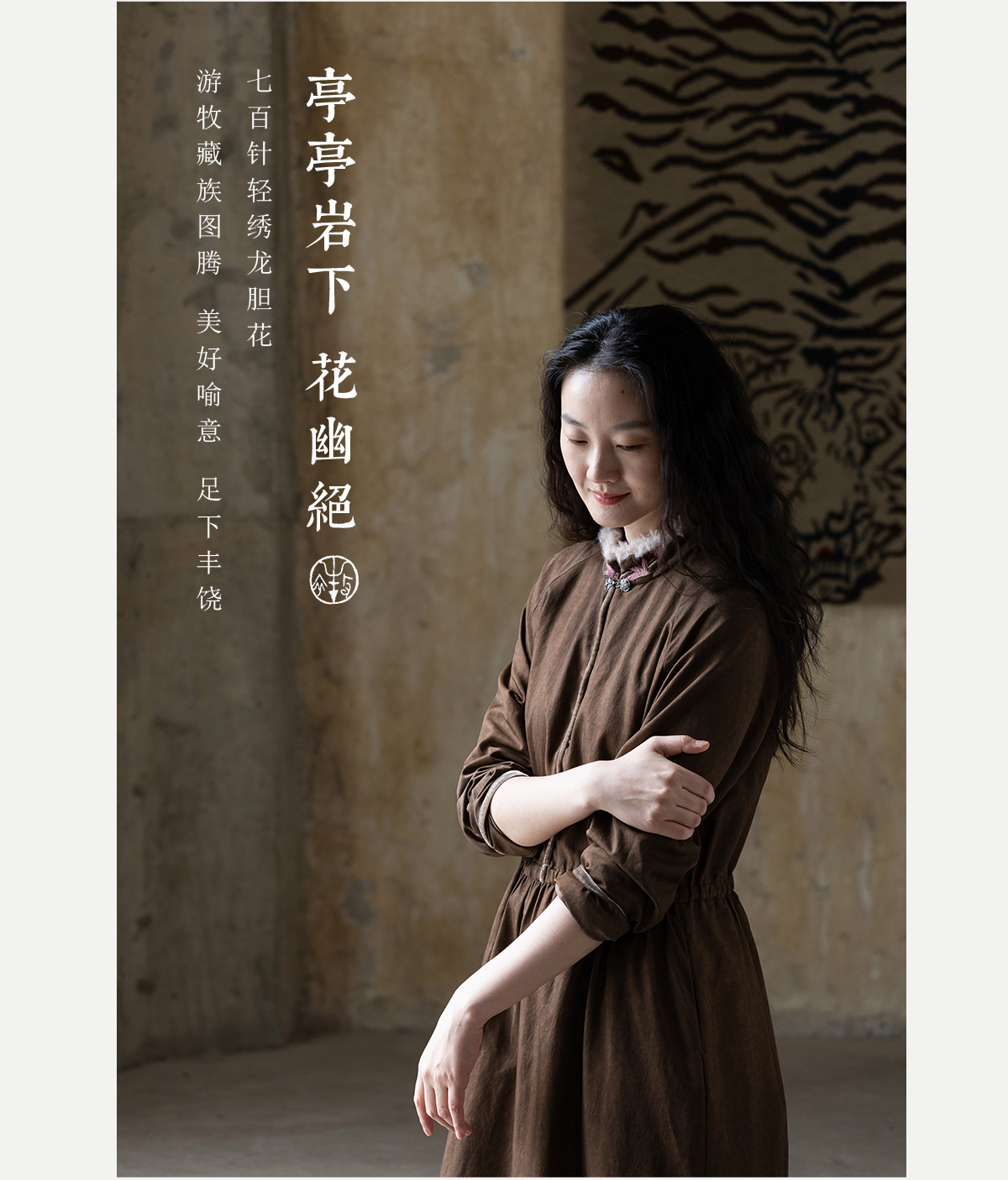 牧衣游原创 丝棉手工刺绣连衣裙新款复古民族风宽松文艺长裙 松松