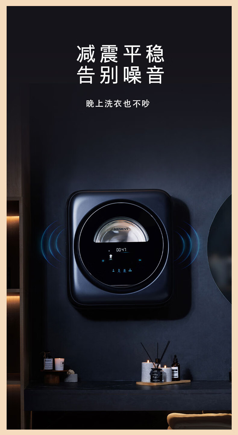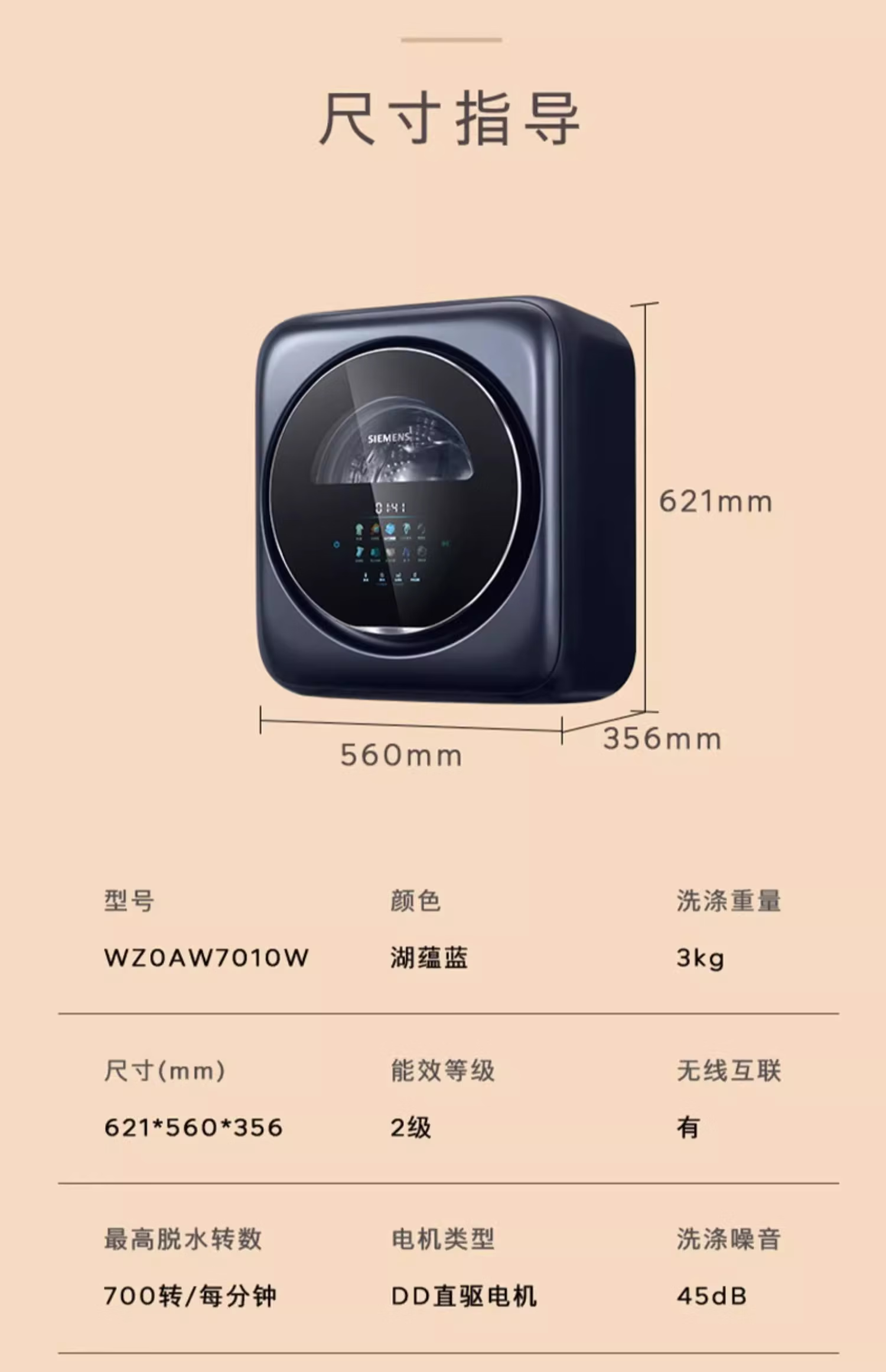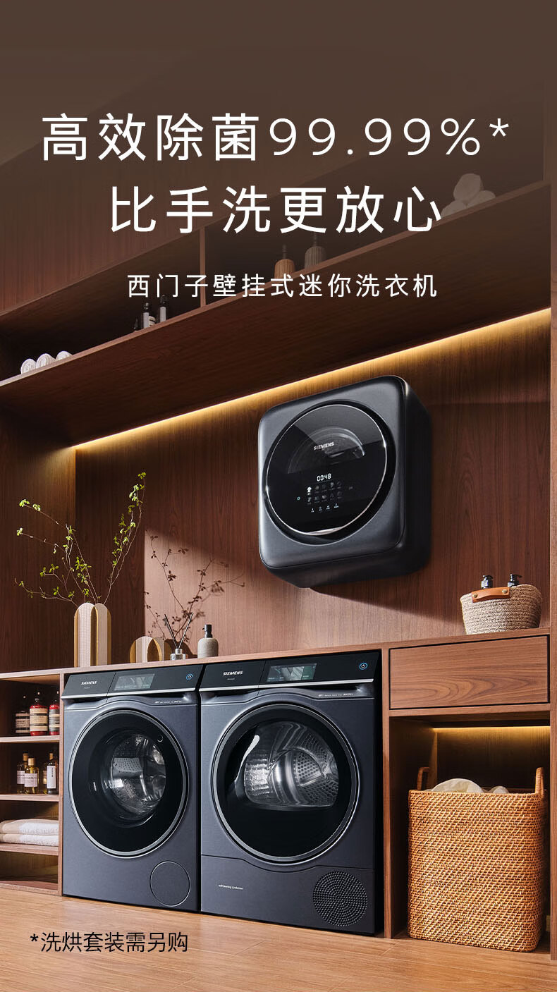 西门子(SIEMENS)壁挂洗衣机3公斤母婴儿童内衣裤高温煮洗全自动滚筒迷你小型挂壁洗衣机 全彩LED触屏 晶御智能 WZ0AW7010W