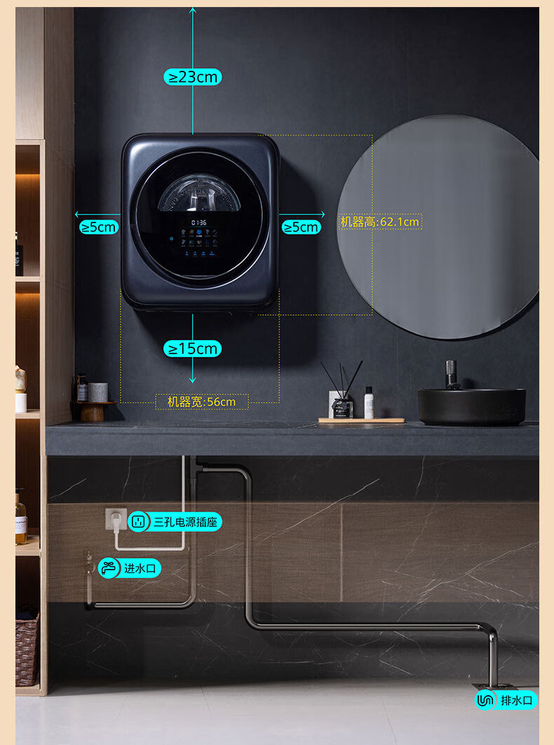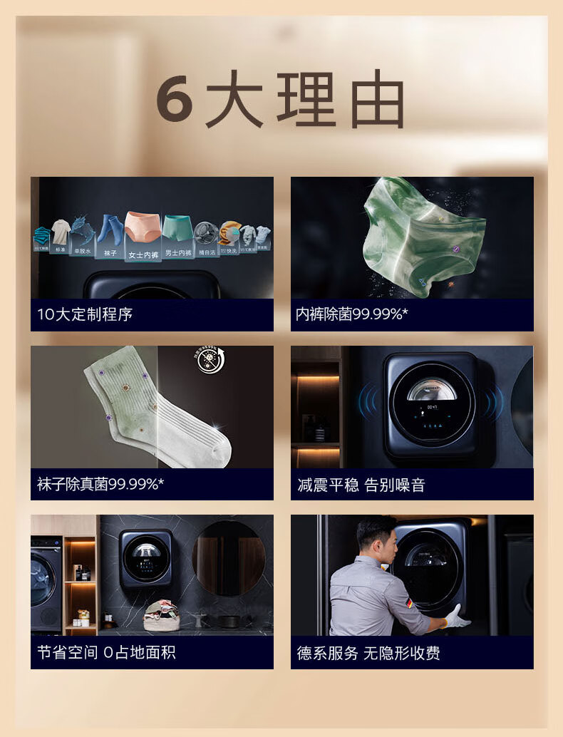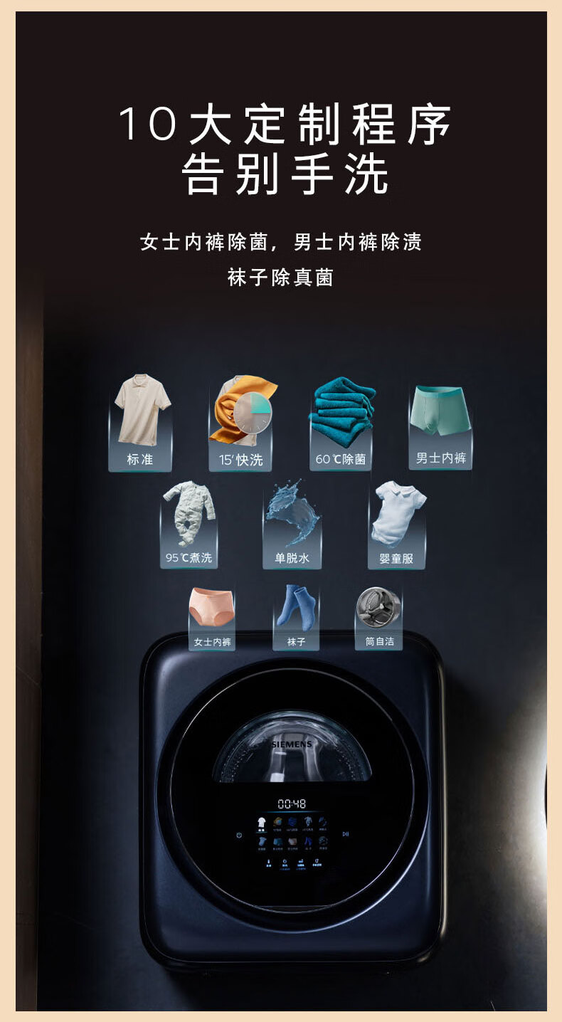 西门子(SIEMENS)壁挂洗衣机3公斤母婴儿童内衣裤高温煮洗全自动滚筒迷你小型挂壁洗衣机 全彩LED触屏 晶御智能 WZ0AW7010W