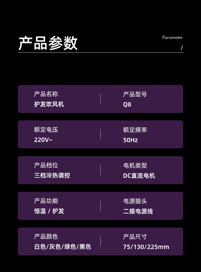 新款Q8护发吹风机大功率速干负离子吹风机家用发廊大功率冷热护发静音电吹风