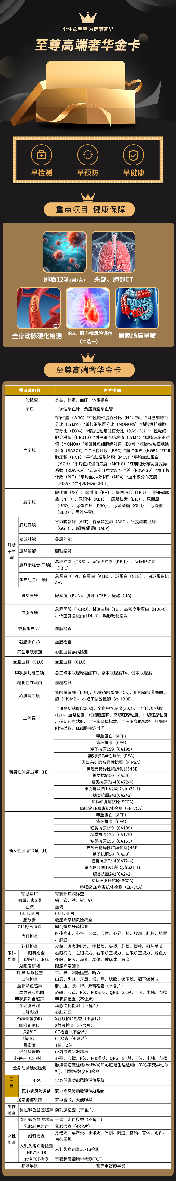 【至尊高端奢华体检套餐-金卡】让生命至尊 为健康奢华