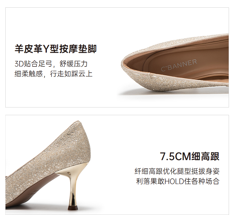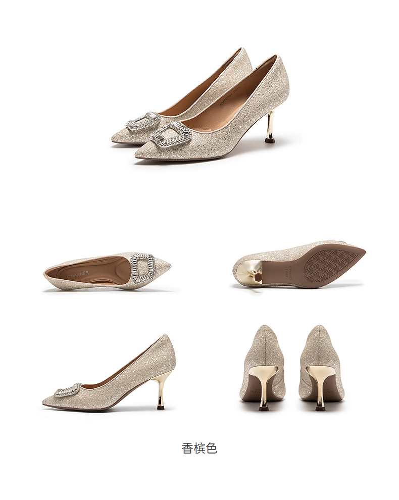 【静音系列】千百度细高跟婚鞋女新娘鞋单鞋A25457757