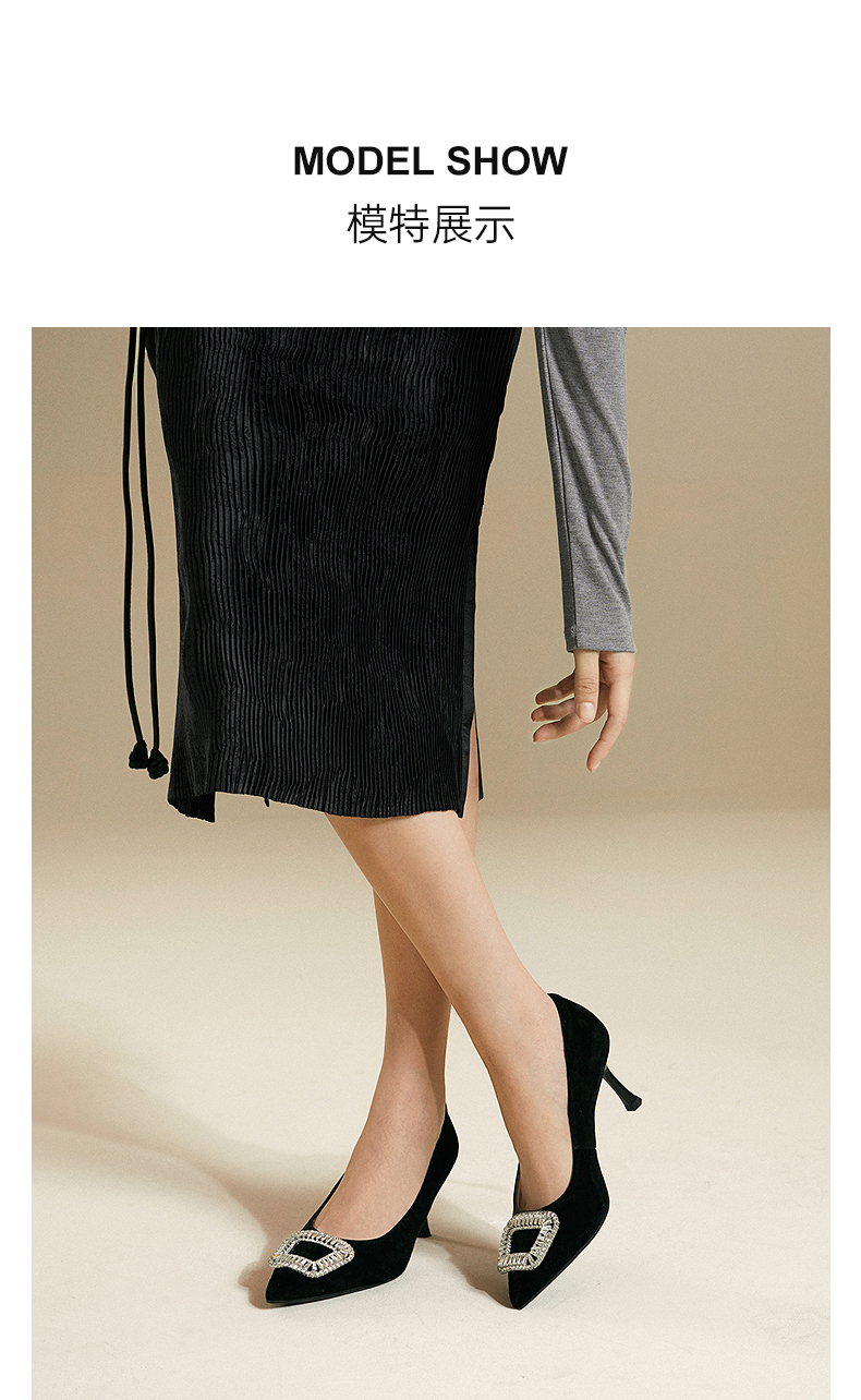 千百度蝴蝶结真皮拼接低跟平底鞋女小香风浅口单鞋A25485702