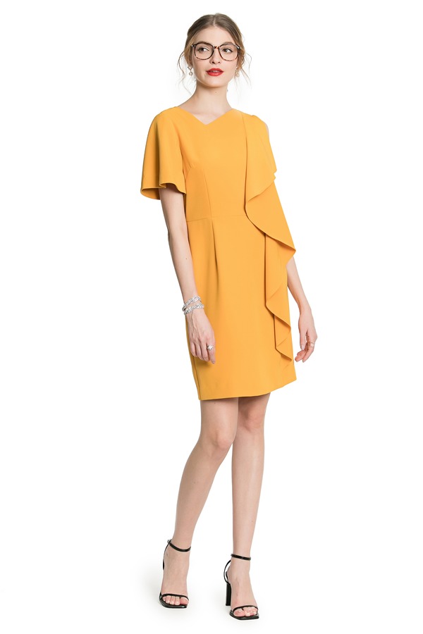 OCTAVIA 黄色荷叶边连衣裙 3419