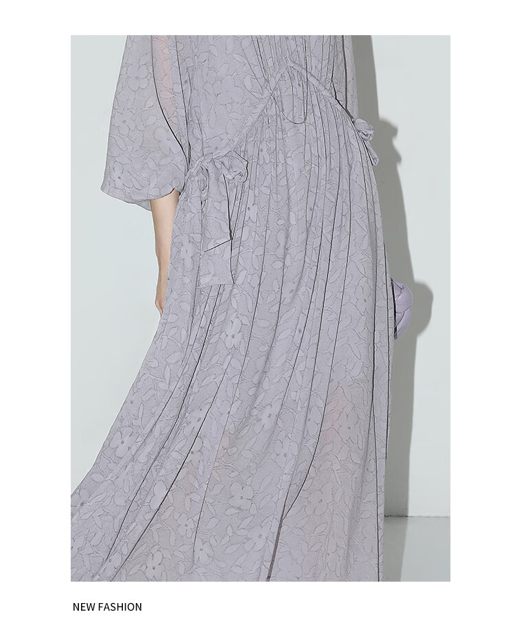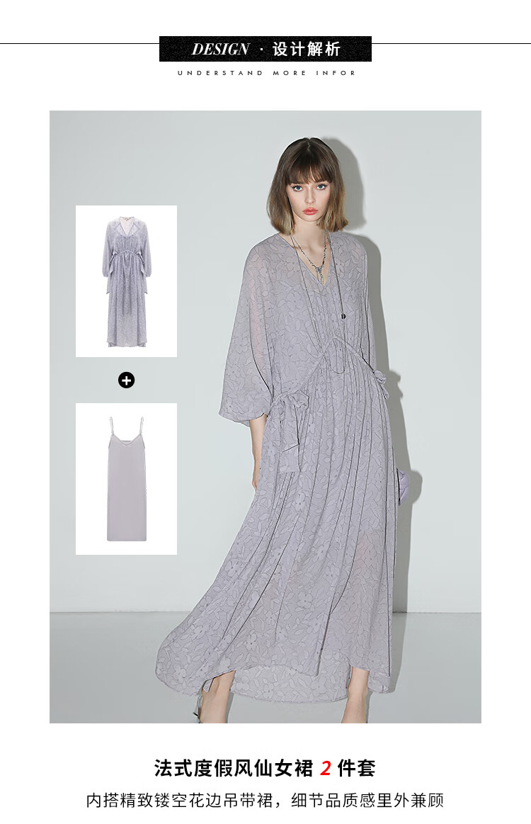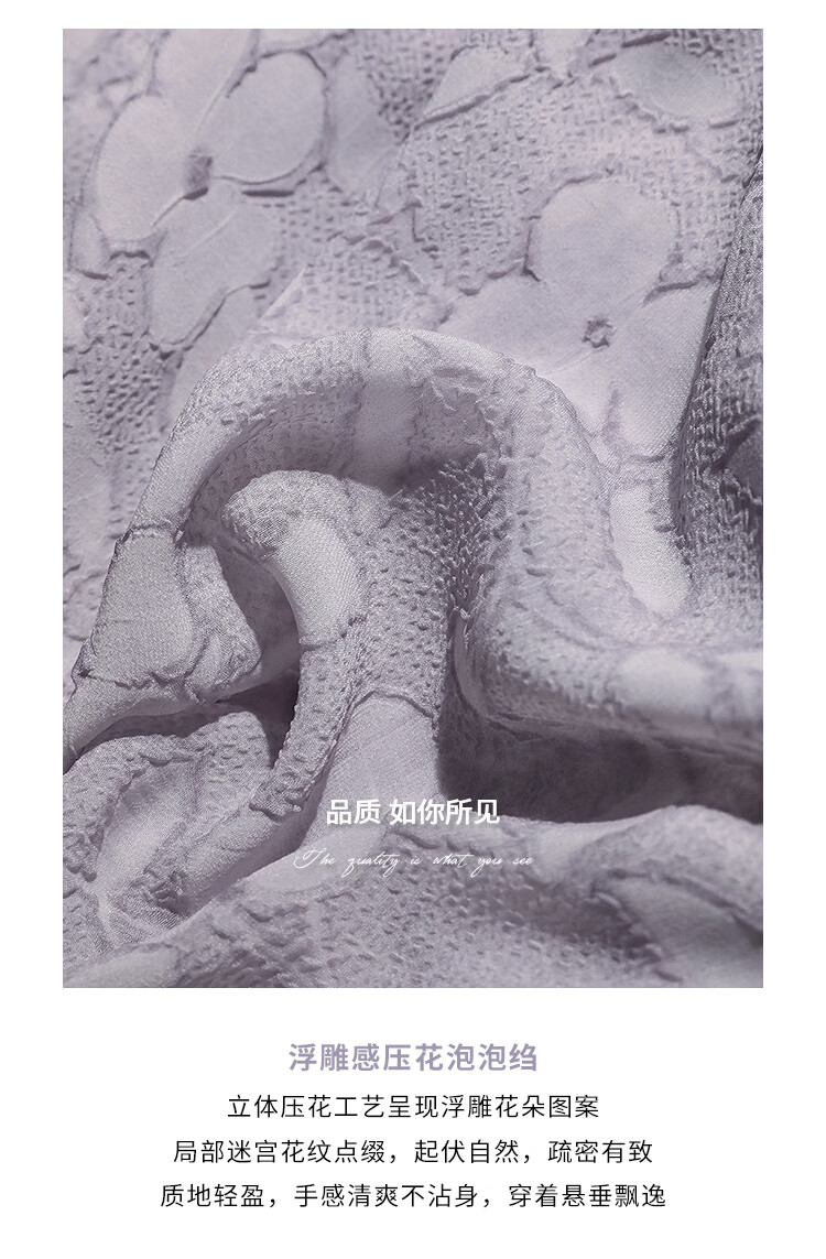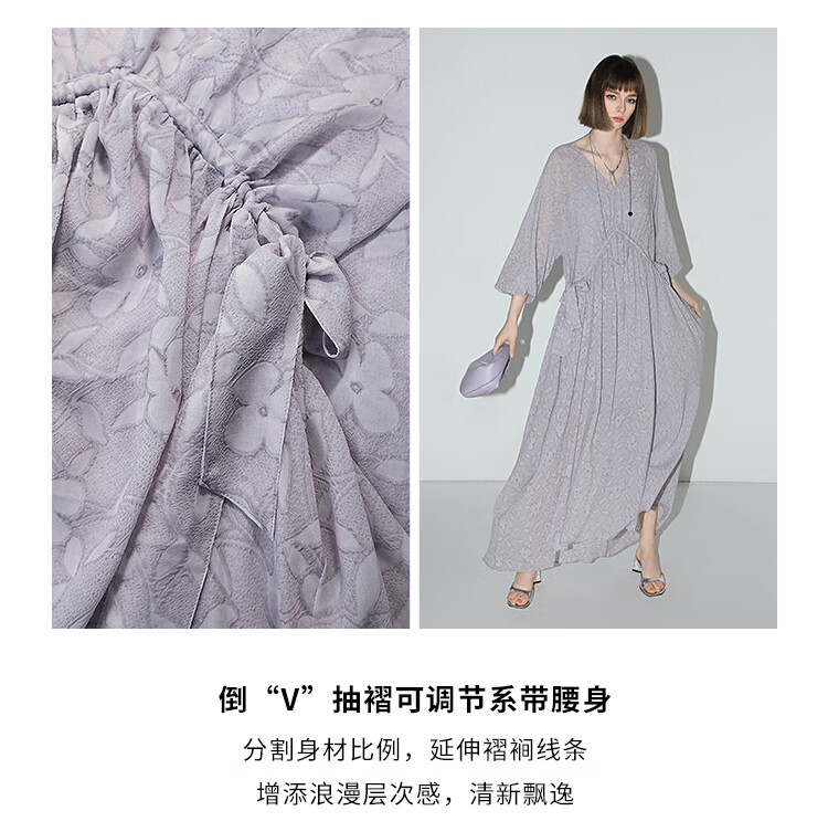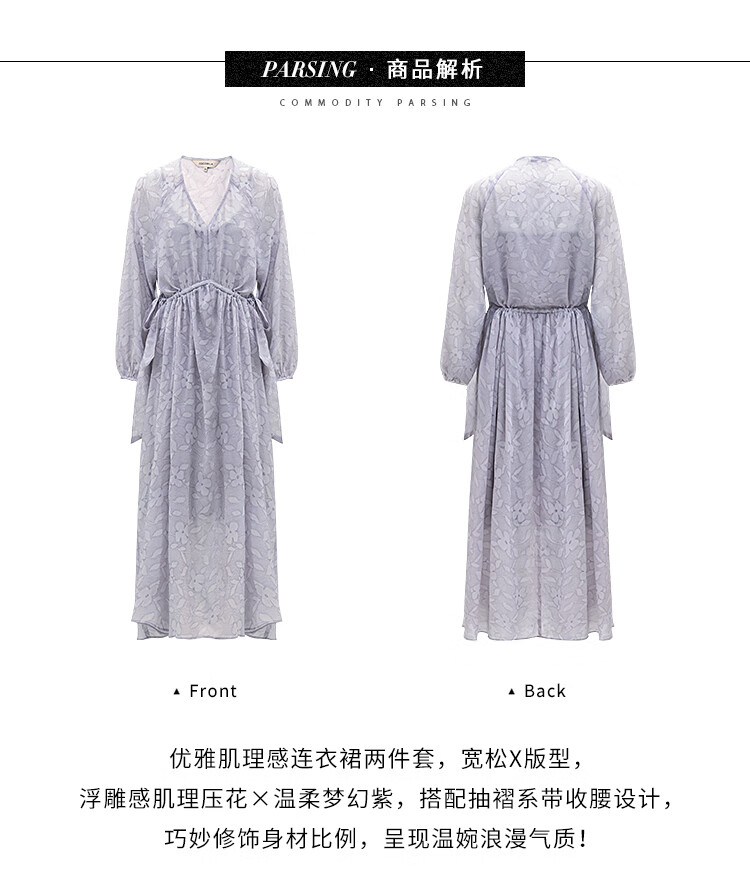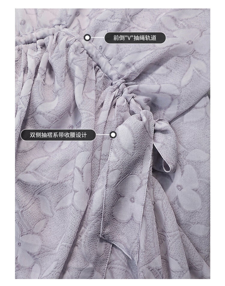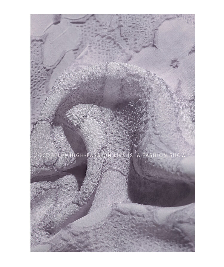 COCOBELLA莫奈紫肌理浮雕压花抽绳连衣裙雪纺裙两件套FR7049