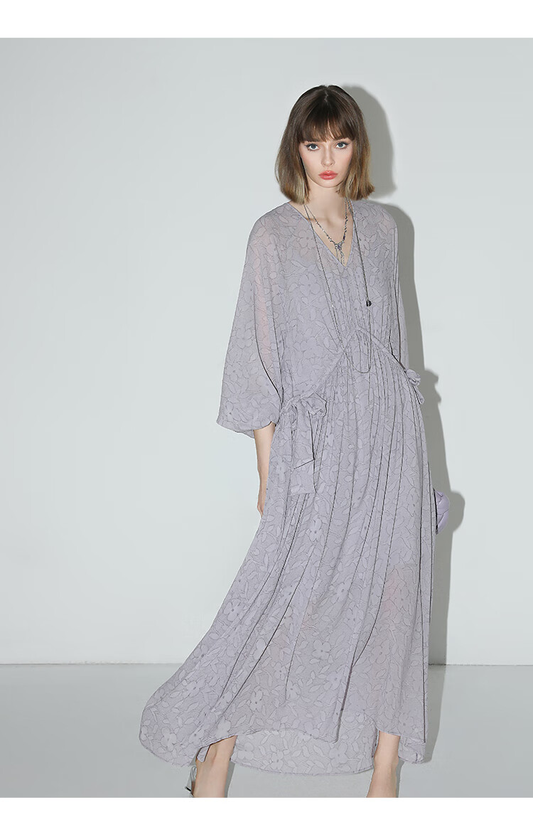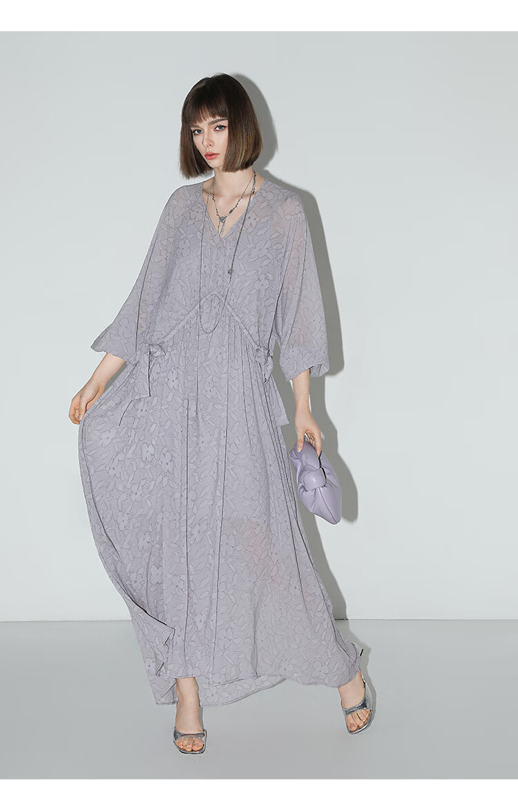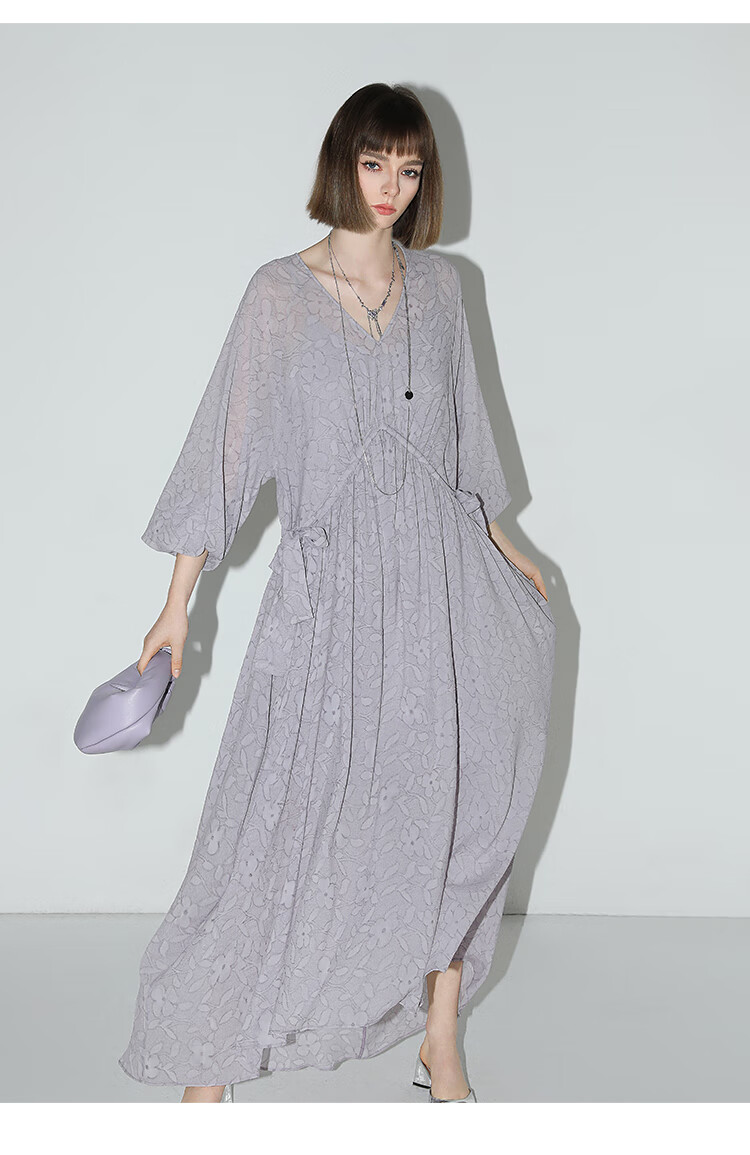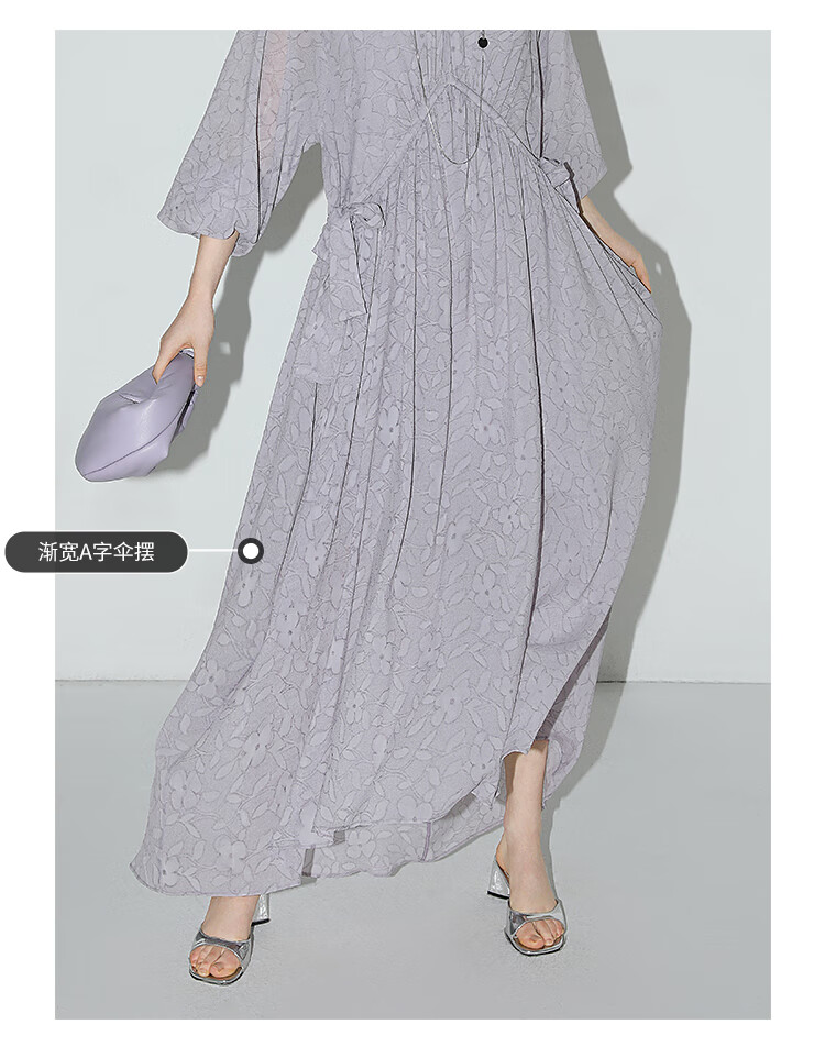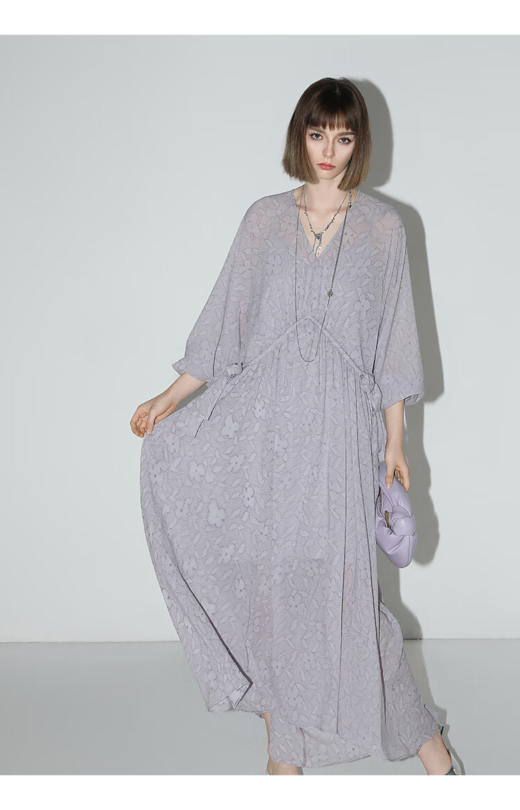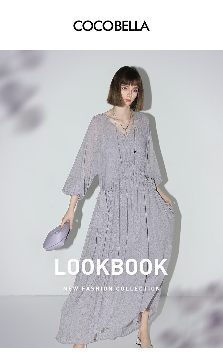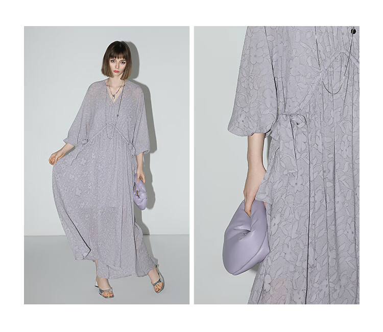 COCOBELLA莫奈紫肌理浮雕压花抽绳连衣裙雪纺裙两件套FR7049